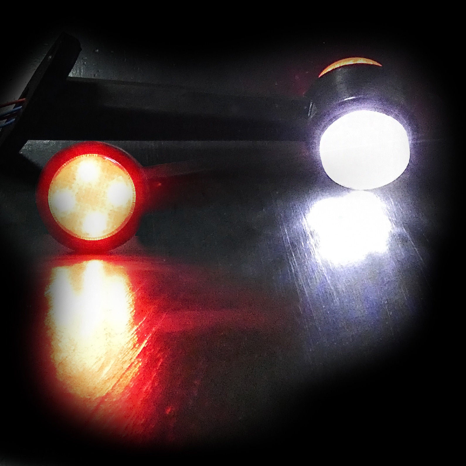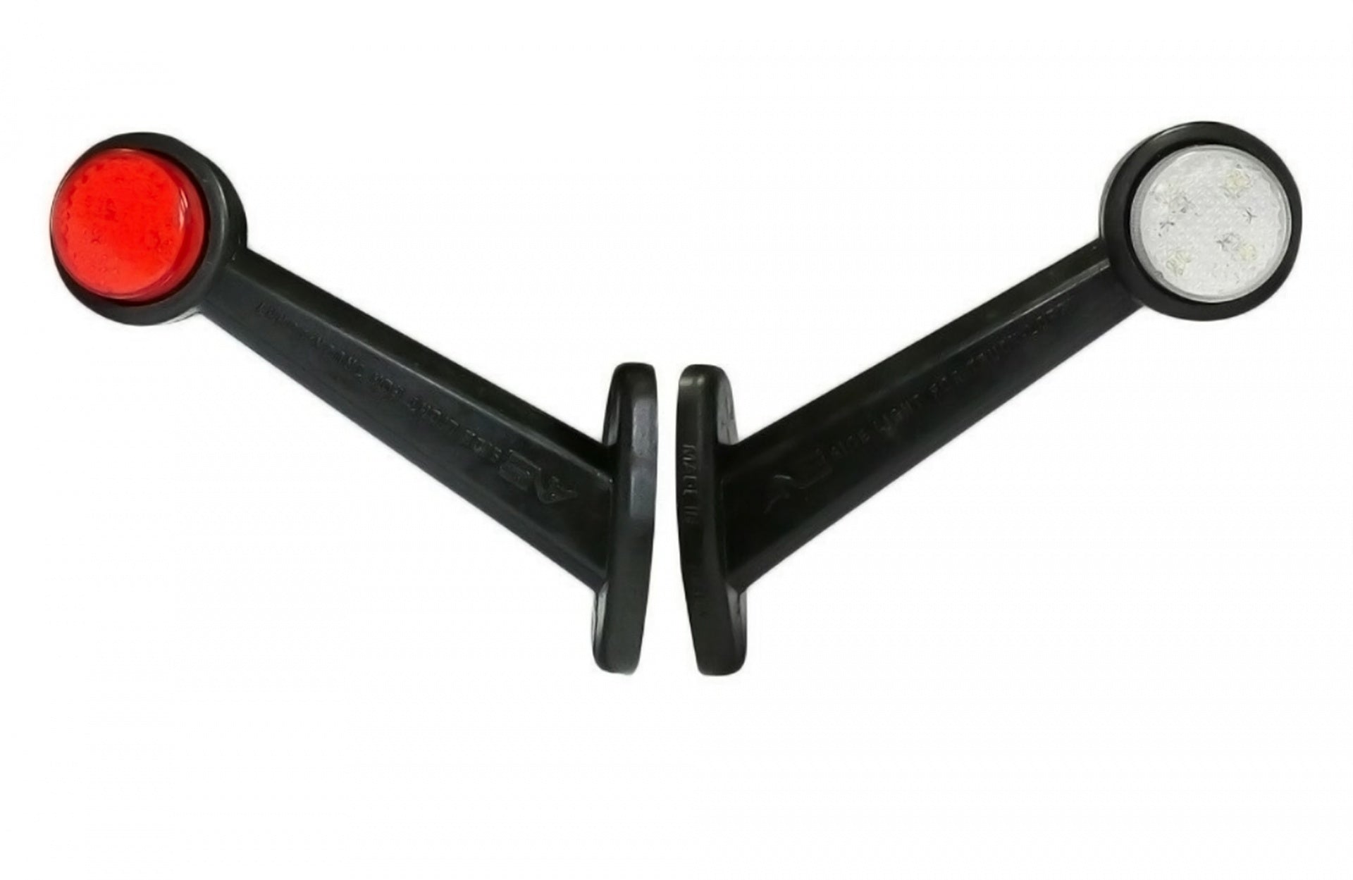 Комплект от два броя - 19см LED странични рогчета/маркери - / бяло -[]- червено / - - габаритни светлини за камиони, тирове и ремаркета Размери: Дължина: 96mm Ширина: 50mm Разстояние между болтовете: 75mm Работно напрежение: 12V 24V