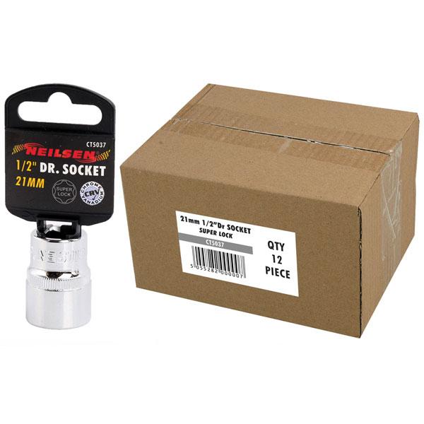 21мм - Вложка Хром Ванадий Super Lock Инструментите на марка Neilsen са висококачествени и надежни, което ги прави подходящи както за професионална, така и за любителска употреба. - За 1/2 тресчотка / върток - Хром Ванадий - Super Lock