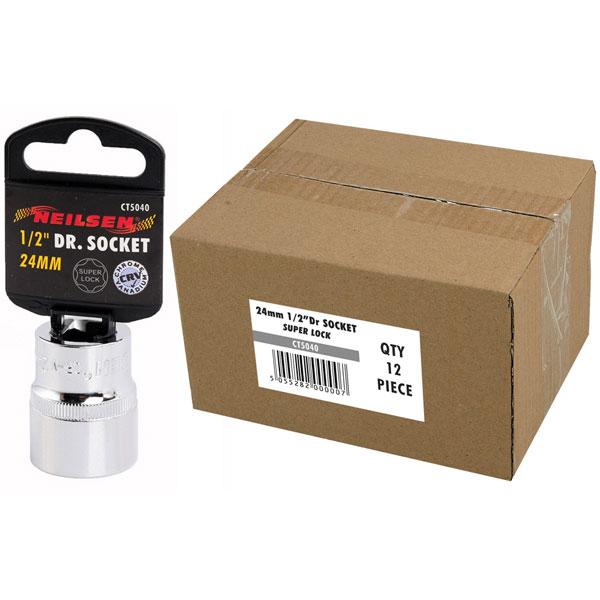 24мм - Вложка Хром Ванадий Super Lock Инструментите на марка Neilsen са висококачествени и надежни, което ги прави подходящи както за професионална, така и за любителска употреба. - За 1/2 тресчотка / върток - Хром Ванадий - Super Lock