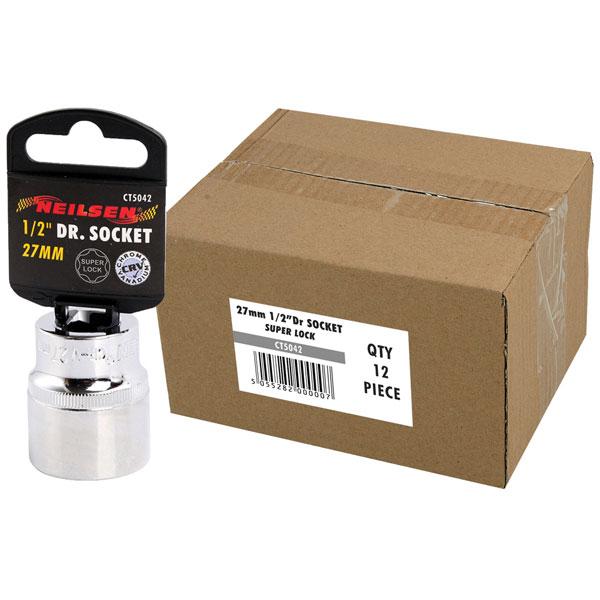 27мм - Вложка Хром Ванадий Super Lock Инструментите на марка Neilsen са висококачествени и надежни, което ги прави подходящи както за професионална, така и за любителска употреба. - За 1/2 тресчотка / върток - Хром Ванадий - Super Lock