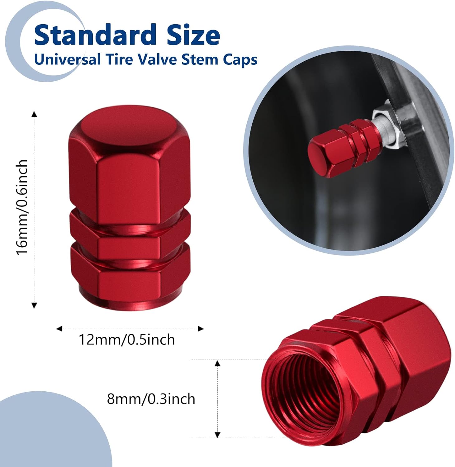 Алуминиеви капачки за вентили. Предотвратява навлизането на вода и прах в гумата и удължава експлоатационния живот на гумата. Лесен монтаж и демонтаж. Цвят: червен. Размери: Дължина - 16мм Външен диаметър - 12мм Вътрешен диаметър - 8мм