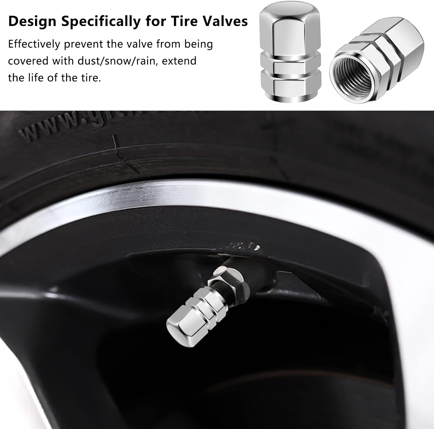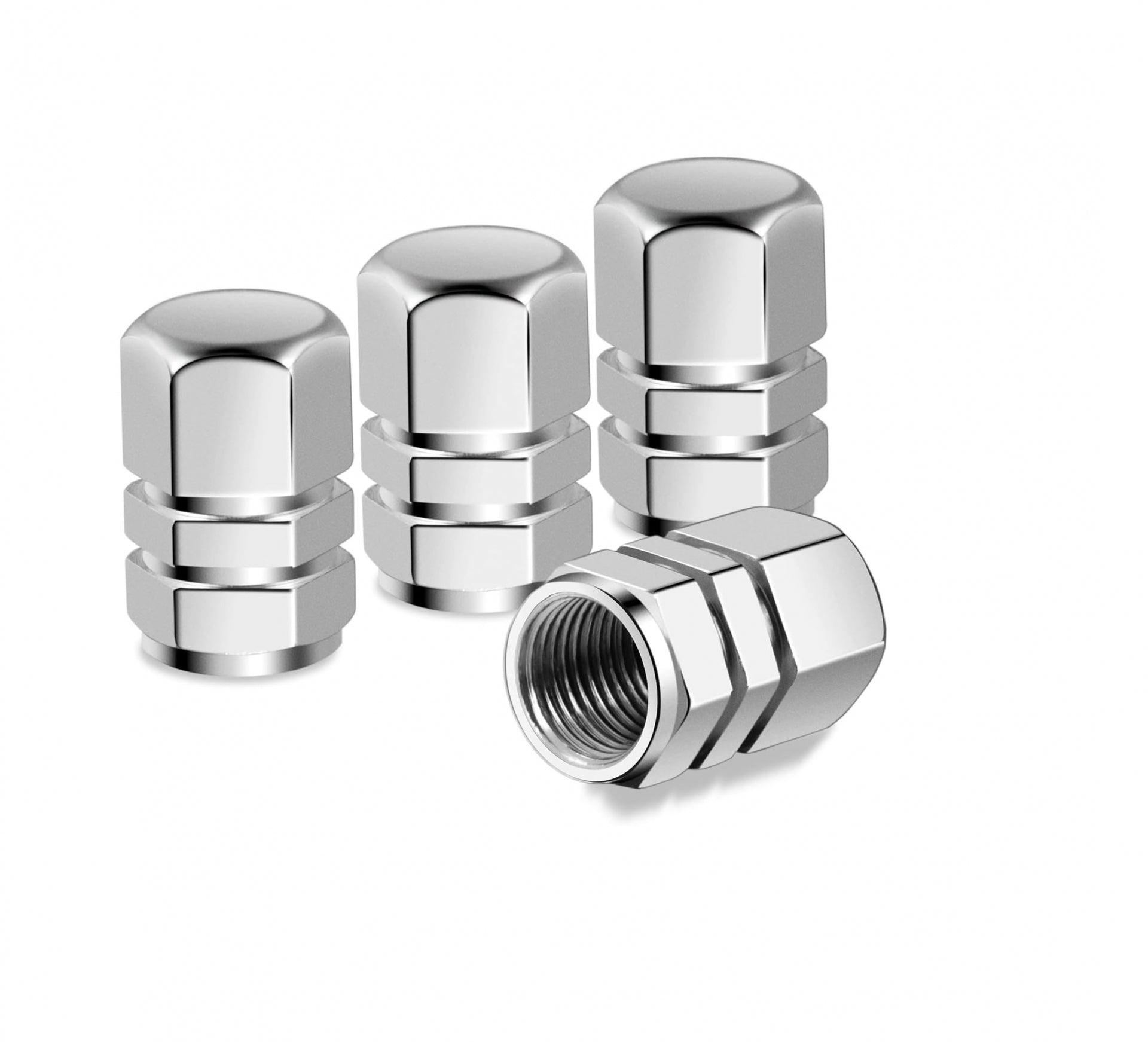4бр Алуминиеви капачки за вентили на гуми сребристи