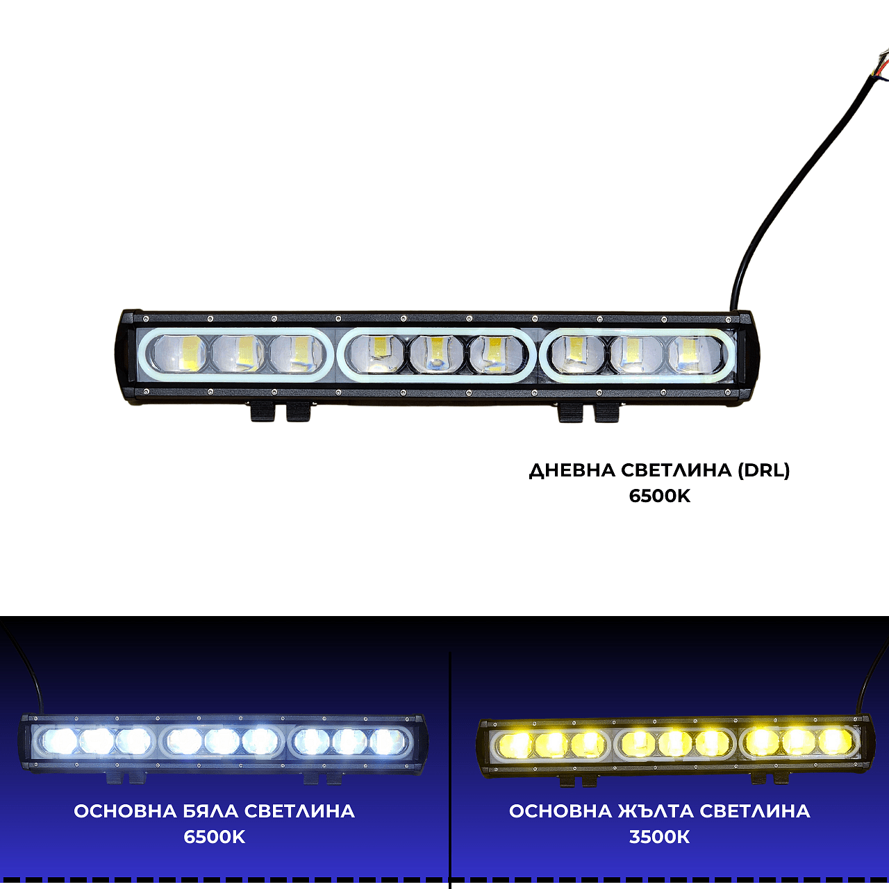 8D 53см 150W 3 в 1 Едноредов LED LIGHT BAR С 3 режима - основна бяла светлина, жълта светлина и дневна (DRL), прав led лайт бар