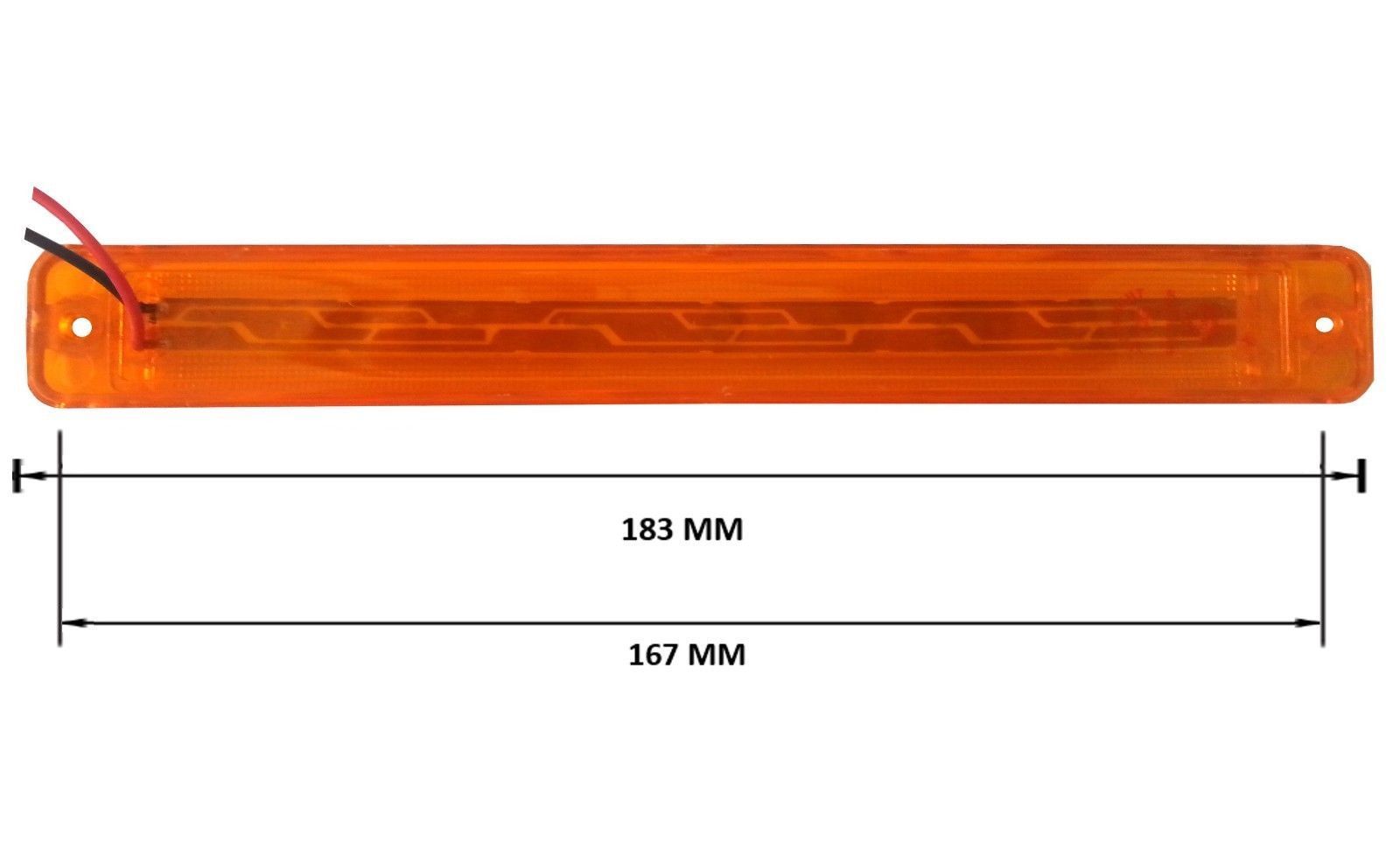 ВОДОУСТОЙЧИВ НИСКО ПОТРЕБЛЕНИЕ НА ЕНЕРГИЯ ЦВЯТ: ОРАНЖЕВО Светодиод: 9 ПРИЛОЖЕНИЕ: СТРАНИЧЕН / ПРЕДЕН / ЗАДЕН ДЪЛЖИНА: 183 мм ШИРИНА: 20 мм ДЕБЕЛИНА: 10 мм РАЗСТОЯНИЕ МЕЖДУ ДУПКИТЕ ЗА ФИКСИРАНЕ: 167 ММ НАПРЕЖЕНИЕ: 24V Количество: 1 лампа