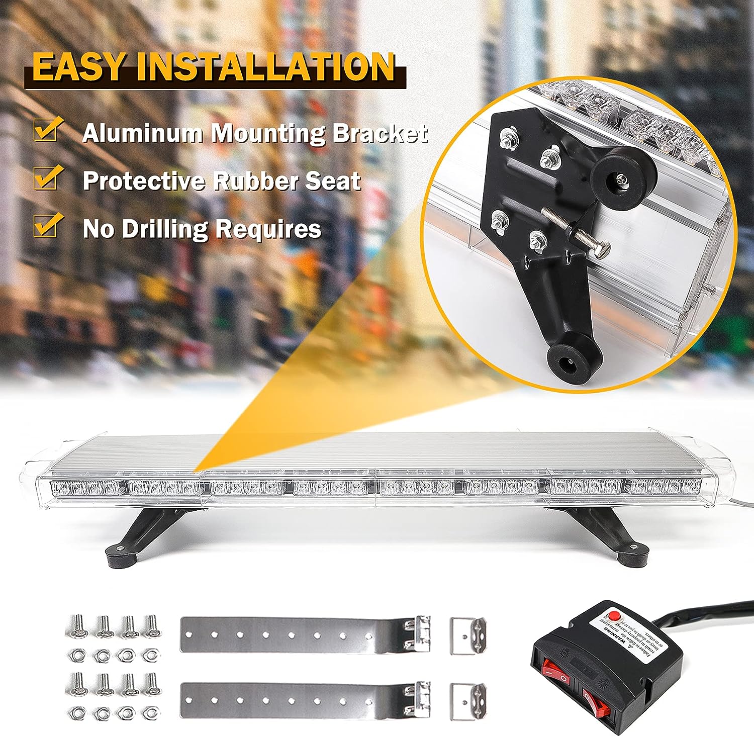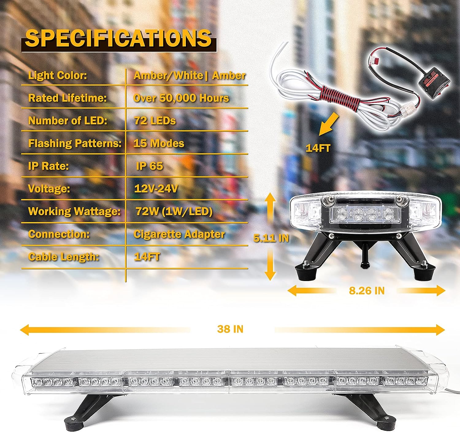 96.5 см 72 LED 72W мощна аварийна диодна сигнална лампа блиц 12-24V 15 режима на работа жълта оранжева светлина E-Mark Е9 за пътна помощ платформа снегорин багер и др.