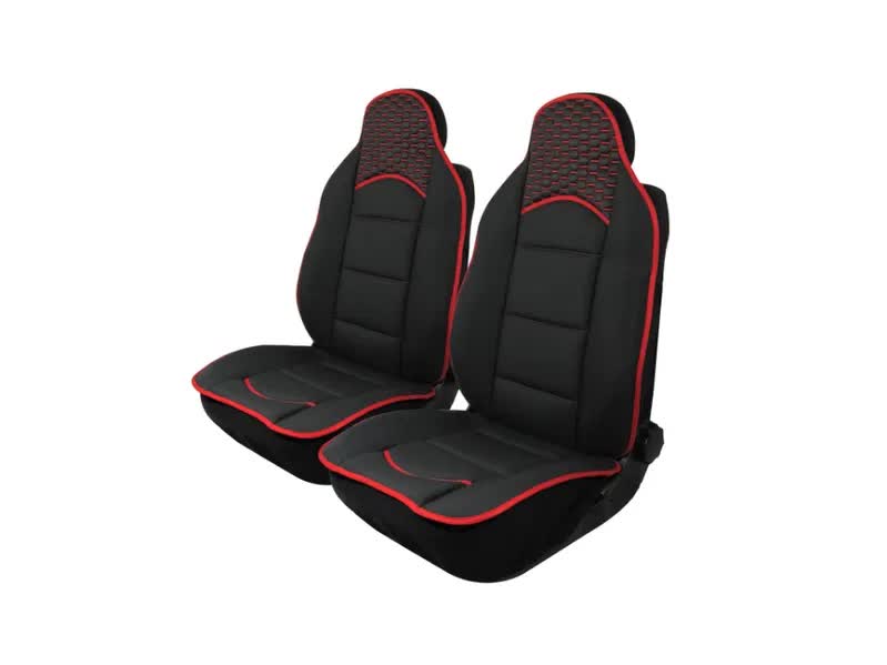 Авто Тапицерия Калъфи за Предни Седалки Черна с Червено Текстил и Кожа / Черно и Червено / Защитава седалките на вашия автомобил, като запазва оригиналната тапицерия от замърсяване и износване - създава комфортна атмосфера - изработена от висококачествени материали - състои се от 2 части включващи калъфки за предните седалки - придава нов стил на автомобила Текстил и ЕКО Кожа