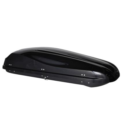 Кутия за багажник за кола с двустранно отваряне и заключване, изработена от висококачествена пластмаса, подходяща за всяка една марка автомобил оборудвана с напречни греди на тавана.