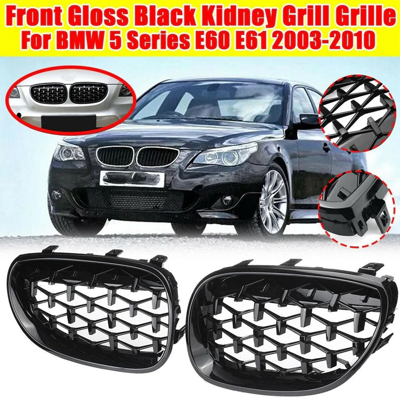 Бъбреци Решетки за BMW 5-ТА СЕРИЯ E60 / E61 (2003-2010) 1 Diamond Style Черен Гланц Материал: Висококачествена Пластмаса Цвят: Черен Гланц (Piano Black) Елементарен Монтаж, Пасват Идеално Придават уникален, изящен вид на автомобила Цената е за комплект