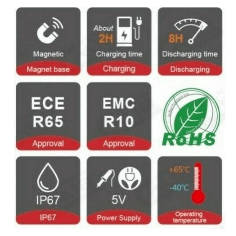 *Силната магнитна основа държи светлините сигурно, но лесно се сменя между превозните средства.