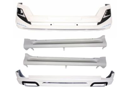 Комплекта съдържа: Добавка за предна броня с дневни светлини, добавка за задна броня, степенки