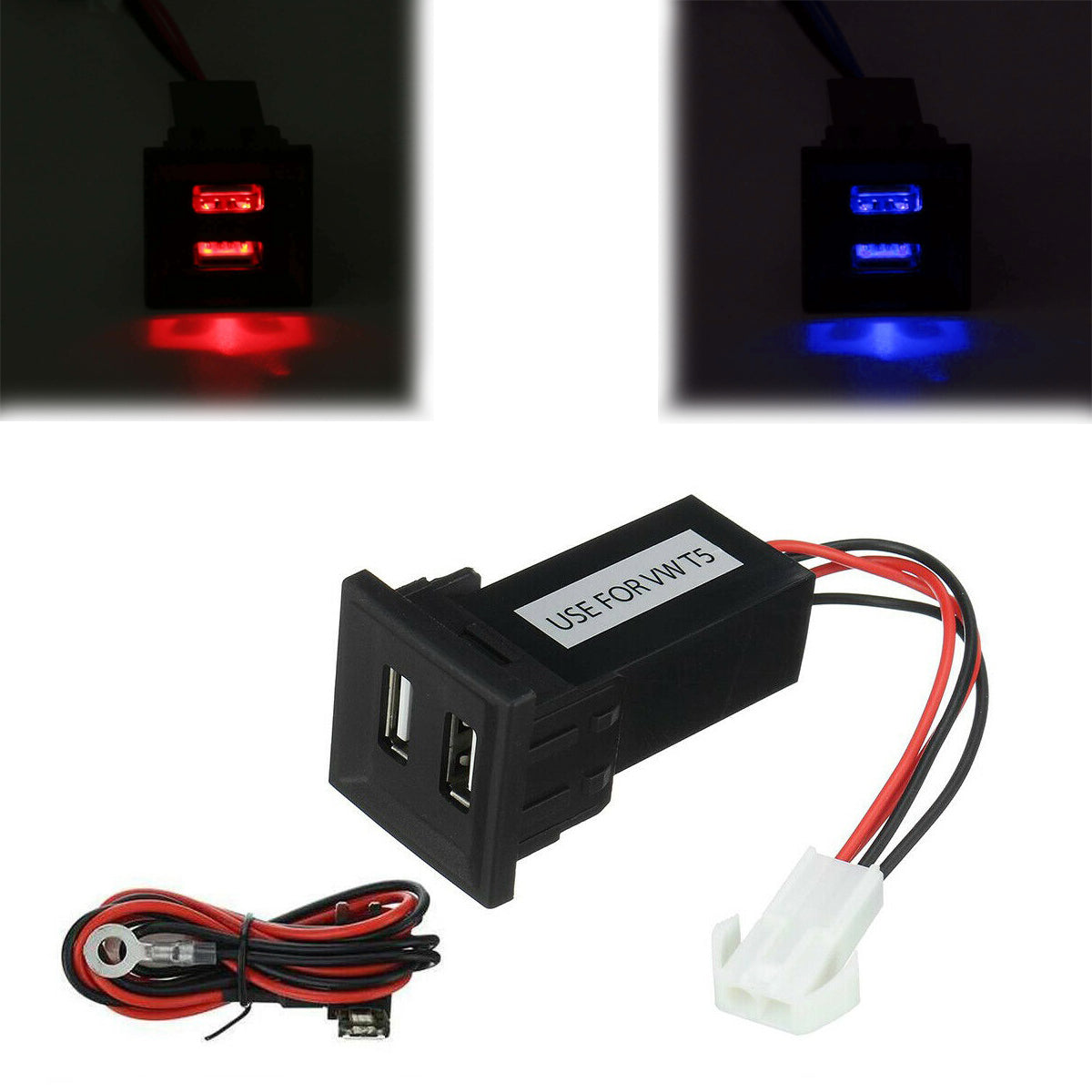 Зарядното е с 4.2 А изходен ток, подходящ за зареждането на всякави плеъри, телефони, таблети. Синя Или Червена LED Подсветка СПЕЦИФИКАЦИЯ: * Подходящо за Фолксваген Транспортер Т5 Caravelle Каравел (2003 - 2009 / 2010) Няма да пасне на T5.1 (2009/2011) или MULTIVAN вариациите * Материал: ABS пластмаса * Цвят: черен * Входно напрежение: DC 12V * Изходно напрежение: DC 5V * Изходен ток: 4.2A Пакетът включва: 1 х зарядно USB с необходимите кабели