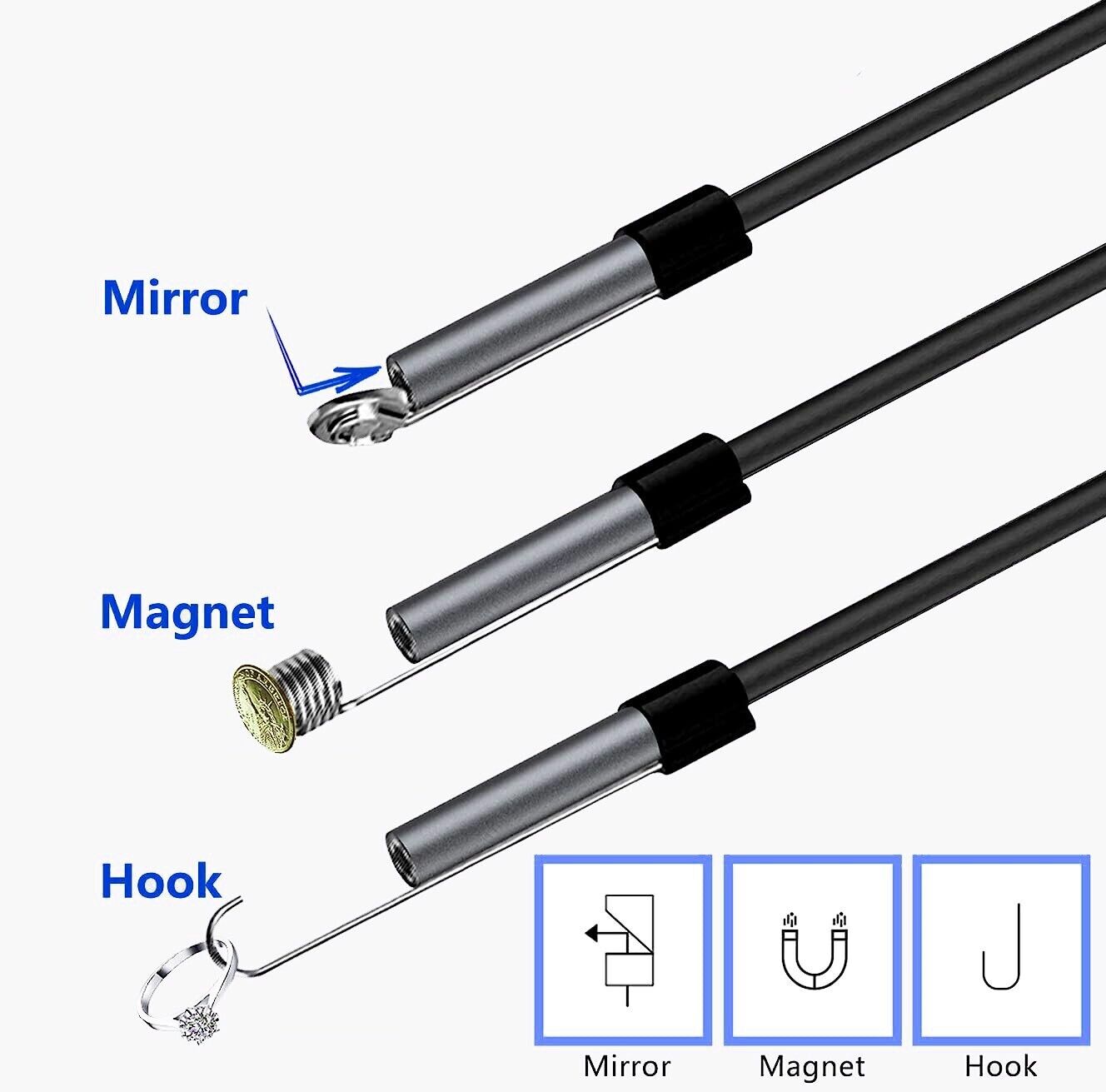 Камерата с ендоскоп е подходяща за трудно достъпни места (канали, тръби, двигатели) със специален софтуер както за вашия компютър или лаптоп така и за вашето Android устройство. Можете да правите видео клип или да снимате и да записвате на вашият телефон или PC. Гъвкава тръба позволява проникване дори в извити пространства. Диаметър на камерата: 5.5мм Резолюция: 640x480 на Android устройство/1280 x 720 на компютър или лаптоп FPS: 30fps Дължина на кабела: 1.5м Комплектът съдържа: 1бр. камера с ендоскоп с функция за снимане 1бр. преходник - от mini USB към USB 1бр. кука 1бр. магнит 1бр. огледало
