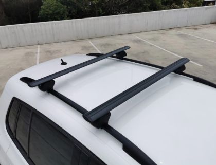 Универсални висококачествени алуминиеви аеродинамични напречни греди за таван на кола оборудвана с фабрични надлъжни рейки без отвор между тавана и рейката, за професионален монтаж с две приставки. Подходящи и за марка Subaru и други, при които зъбчето за захват е от вътрешната страна.