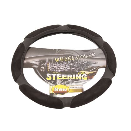 Калъф за волан от еко кожа 38см - Race - черен цвят