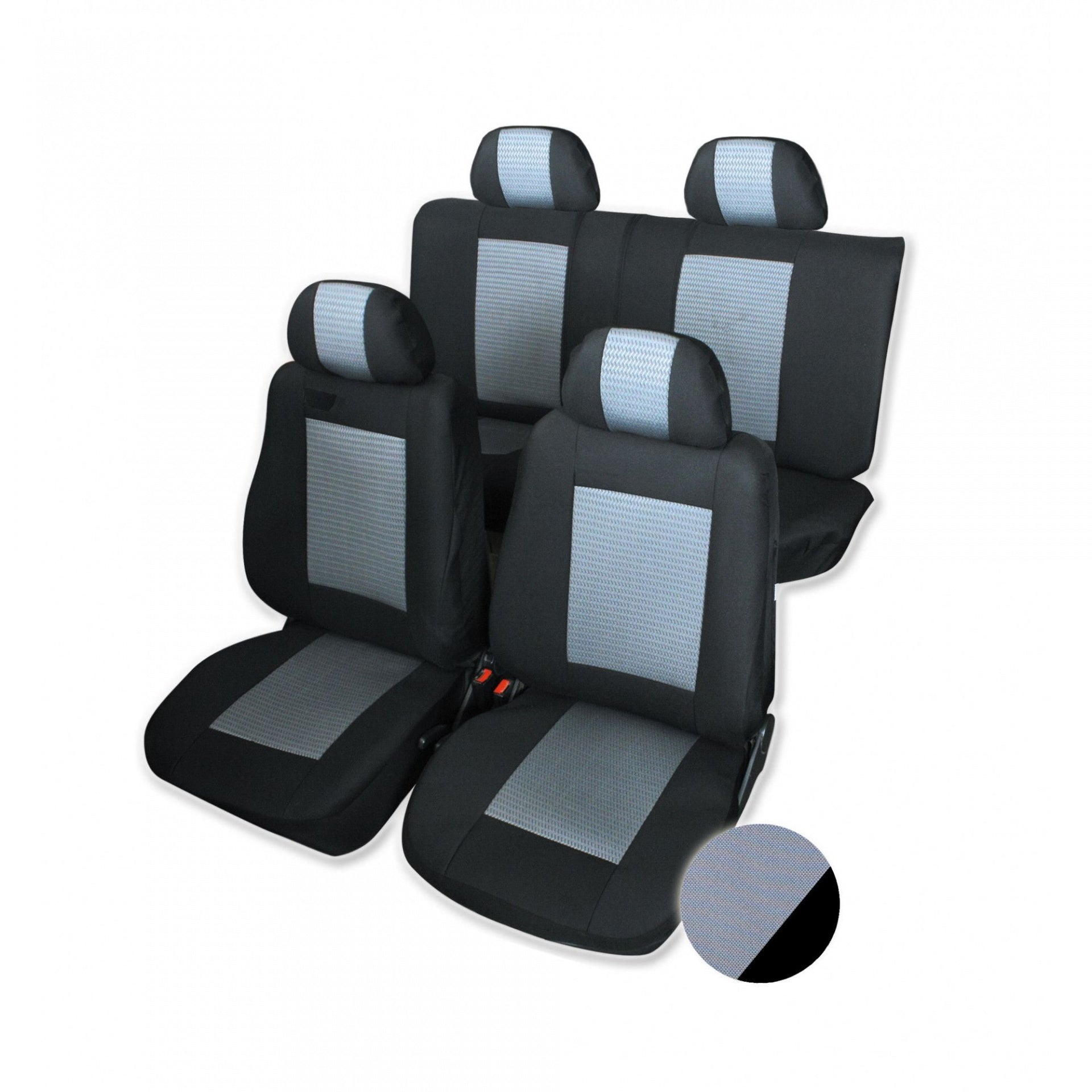 Тези калъфи са идеални за защита на вашите автомобилни седалки Благодарение на високото качество на използваните материали, тапицерията е устойчива на ежедневно излагане на слънчева светлина и износване, лесна поддръжка и почистване, пране при 30ᵒС. Позволява сгъване на задната облегалка. Съвместима с Airbag Комплектът включва: 2 калъфи за предни седалки 1 калъфка за задна седалка 1 калъфка за задната облегалка 4 подглавника