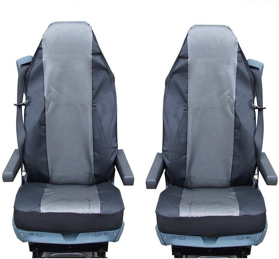 Два броя калъфи (за две седалки). Имате достъп до всяко място около седалките, под тях и калъфът не пречи за използването на колани, закопчалки. Удобна за използване. Могат да се перат в пералня. Калъфите за седалки за тежкотоварни автомобили защитават седалките, като запазват оригиналната тапицерия от замърсяване и износване, а ви осигурява удобство. Създава комфортна атмосфера във вашия автомобил Специално ушити за MAN GA, TGL, TGX, TGS! Пакетът съдържа: - 2 калъфа за седалки - цвят: Сив-Черен