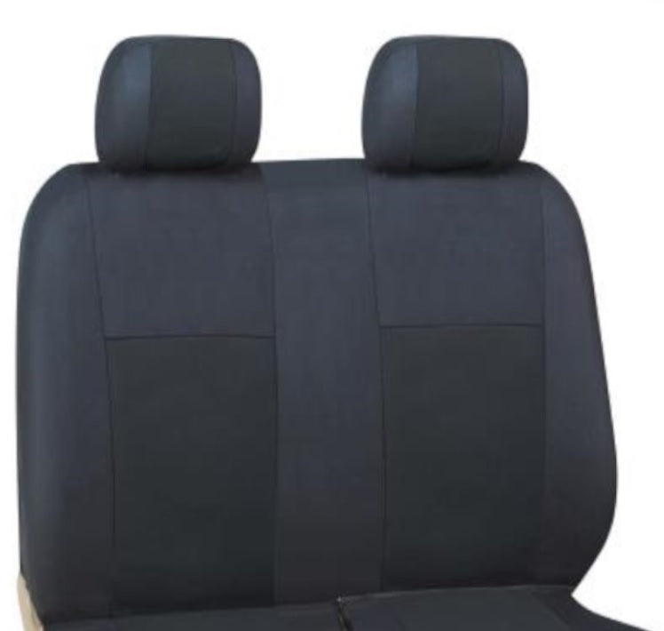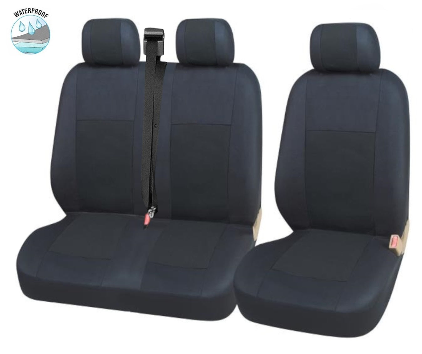 Комплектът се състои от 5 части. Съвместим с 99% от бусовете с двойна пасажерска седалка. Средната част ан всяка седалка (по-тъмната на снимките) е от водоустойчив материал! Изработена от качествени устойчиви на износване материали. Запазват оригиналната тапицерия от зацапване и износване. Пране в пералня до 40с . Съвместими със седалки с вградени въздушни възглавници. Закрепя се под седалката с метални ластици и кукички, стои изпънато. Комплектът съдържа калъфи за: 2 предни седалки 3 облегалки за глава