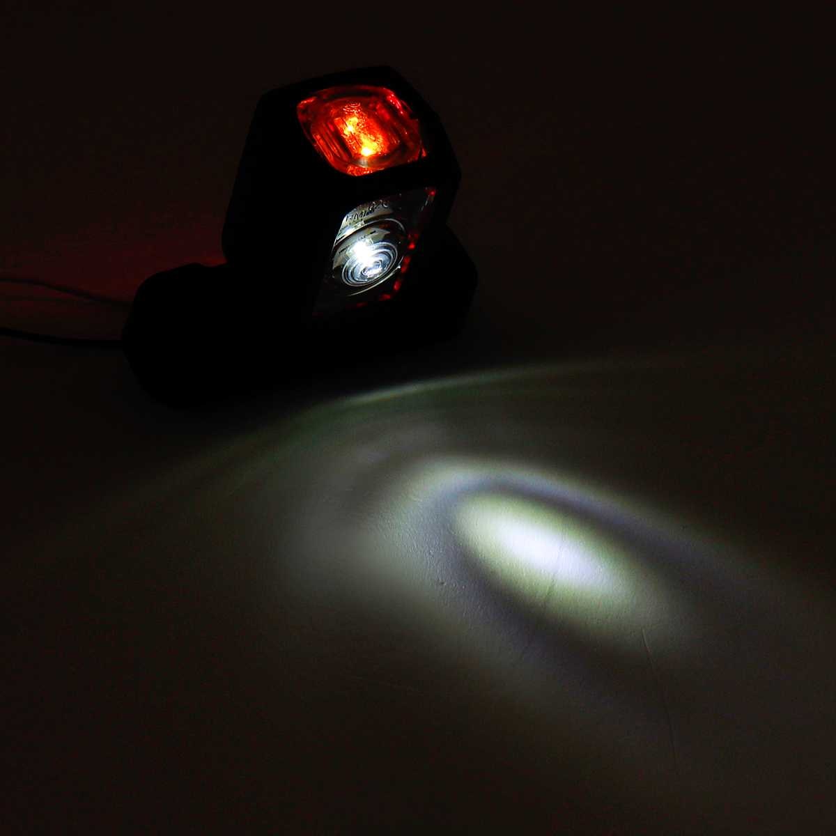 Комплект от два броя - LED странични рогчета/маркери - с всички габаритни светлини - / бяло -[оранжево]- червено / - - 83mm височина - габаритни светлини за камиони, тирове и ремаркета ** бяло - отпред ** оранжево - отстрани ** червено - отзад Размери: Височина: 185mm Дължина на основата: 102mm Ширина на основата: 33mm Разстояние между болтовете: 74mm Работно напрежение: мултиволтаж 12V - 24V