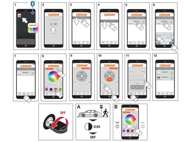 Osram ви предоставя иновативен модул позволяващ ви да управлявате светлините чрез Bluetooth. Без допълнителни кабели и антени, модулът има обхват от 2 до 3 метра.