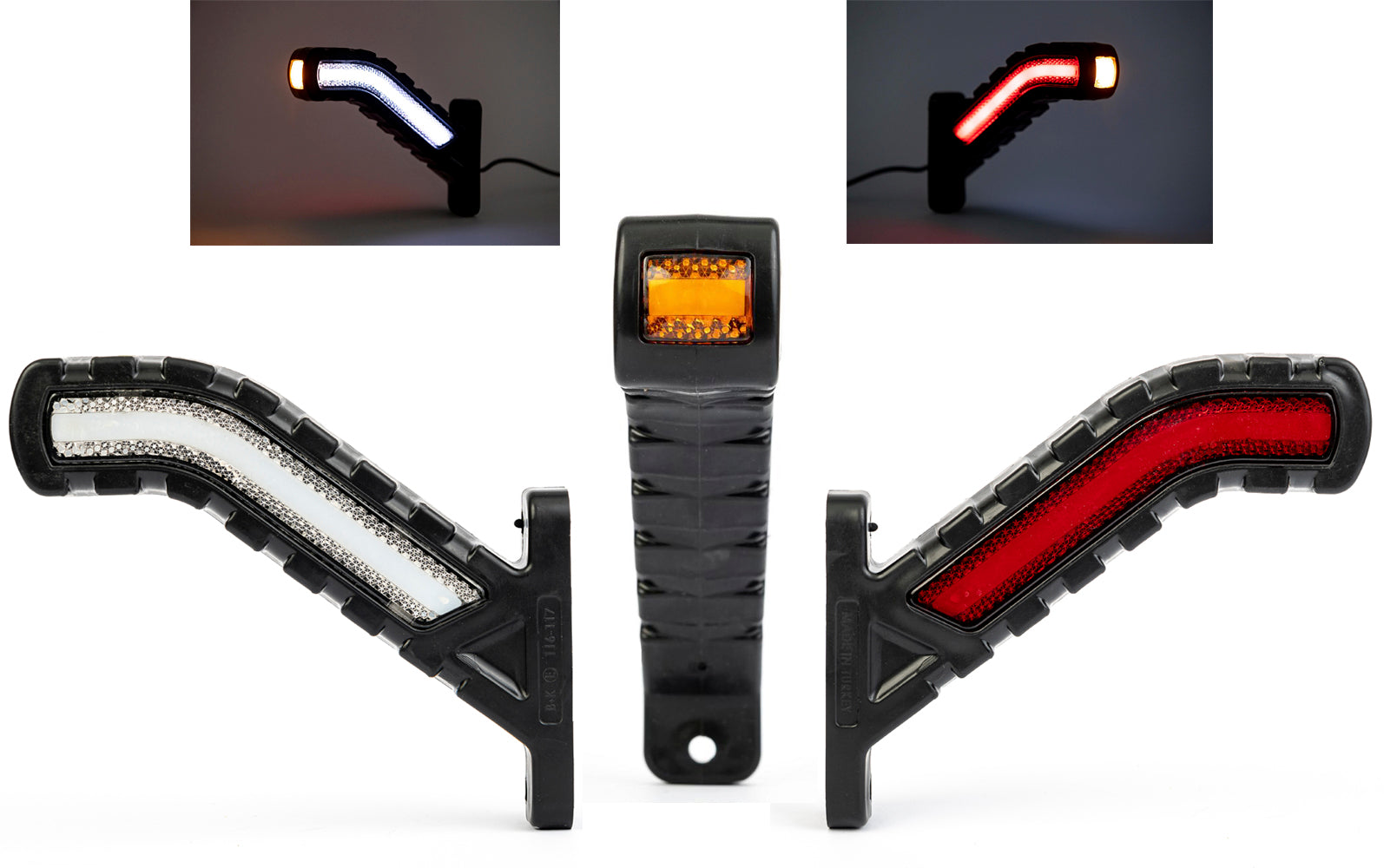 Универсален LED Габарит, подходящ за камиони, каравани, товарни ремаркета и полуремаркета, платформи за лодки и мотори, селскостопански машини и др Неон Ефект Три Светлини - Бяла, Червена, Жълта Размери: Дължина - 180мм, Височина - 160мм x 140мм Разстояние между монтажните отвори - 76мм Водоустойчивост: IP 66/68 24V