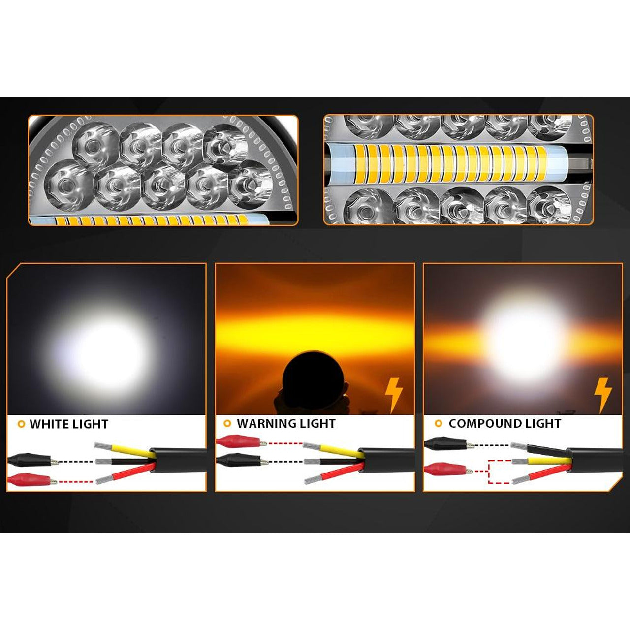 Комплект 2бр квадратен 4” (10см) LED халоген с комбинирана светлина - бяла + оранжева блиц светлина, 45W 12V/24V