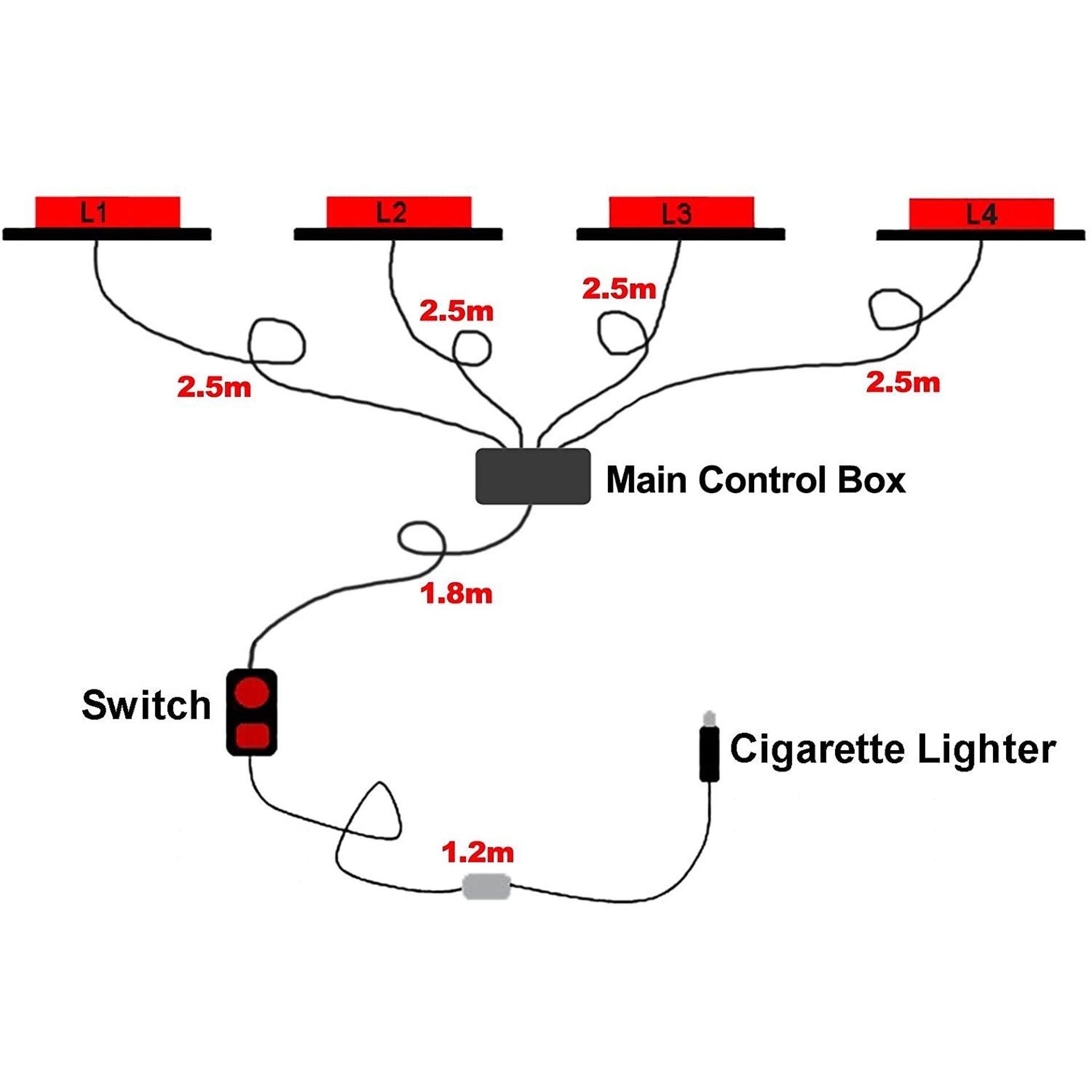 Комплект 4бр аварийни светлини с контролер, Мигаща блиц светлина, 8 режима на работа