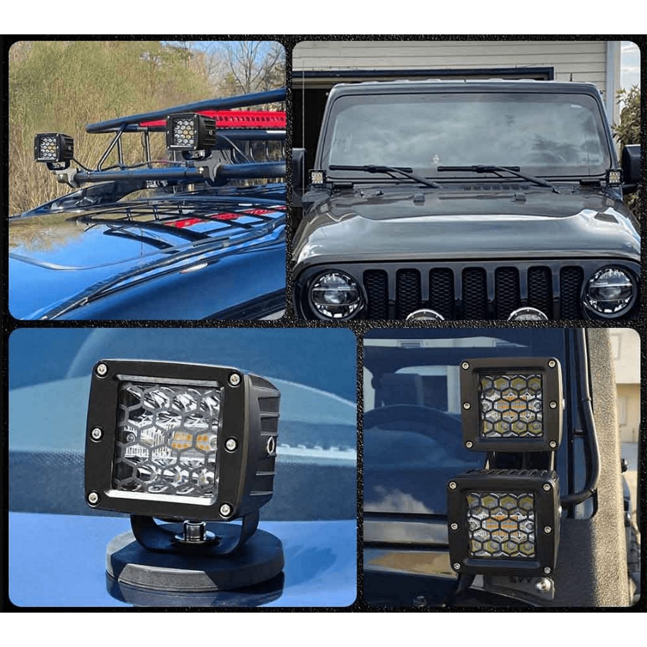Комплект 6бр квадратни LED работни светлини, бяла 6500К и оранжева/блиц 3000K светлина, 6 режима, 12/24V