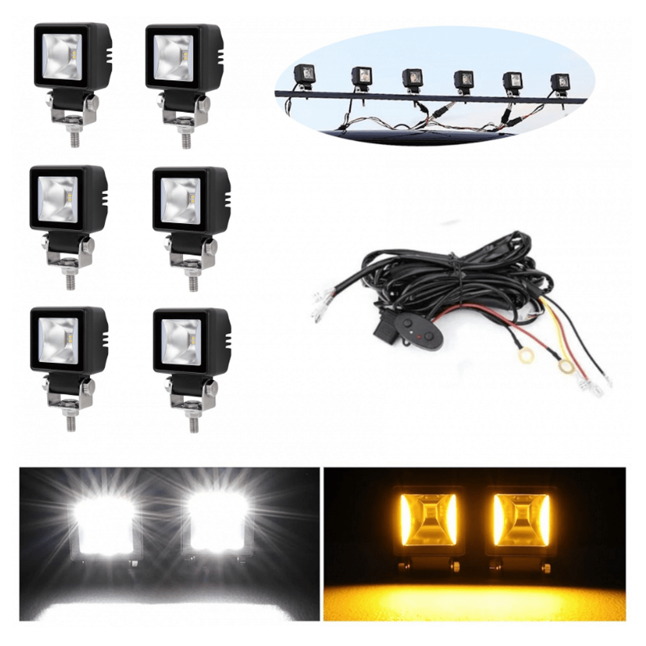 Комплект 6бр LED халогени / работни светлини, основна бяла и оранжева светлина 12V-24V + подарък инсталация