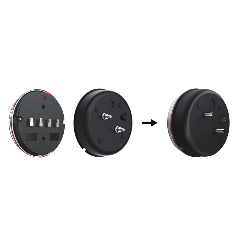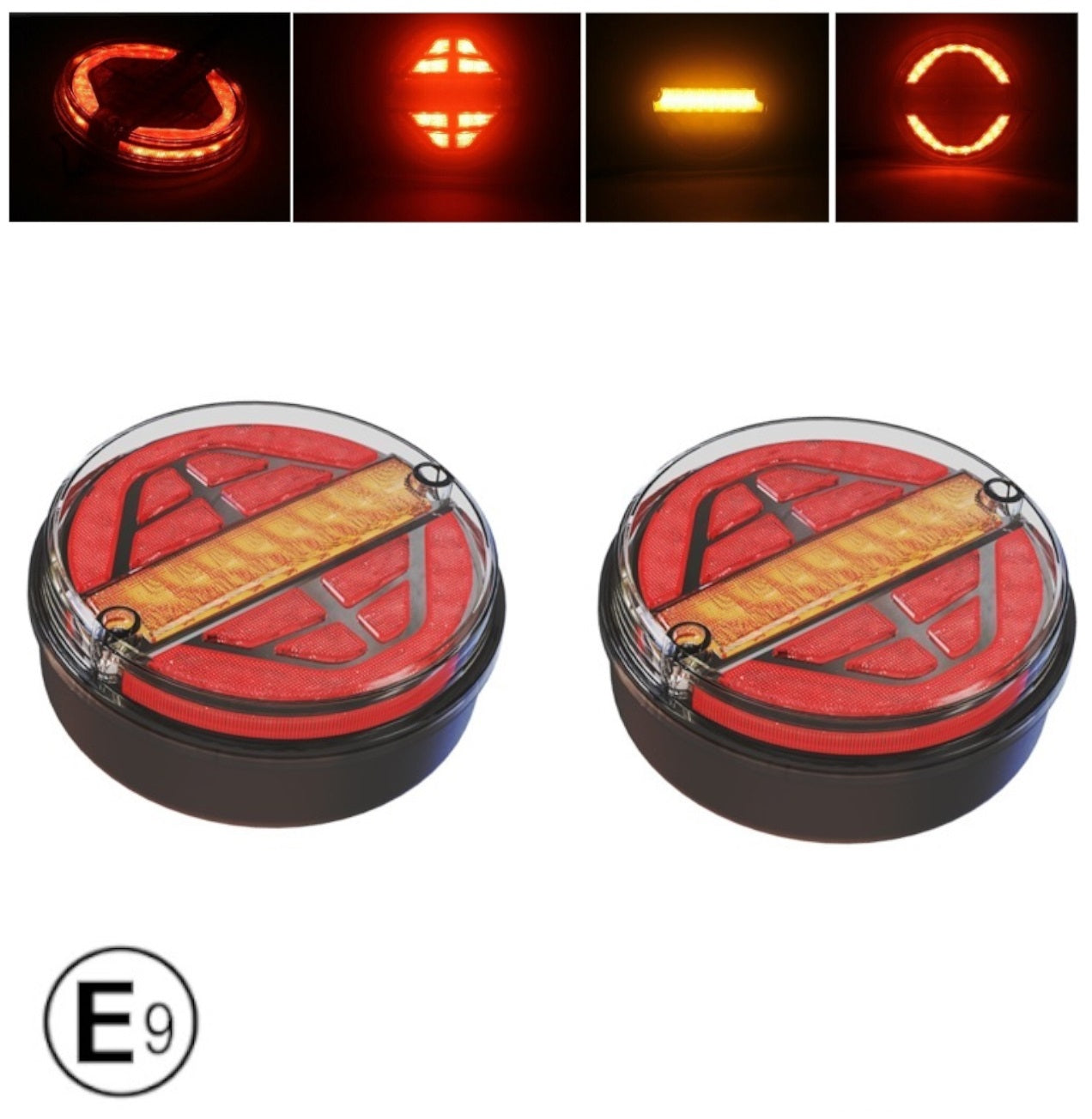 Комплект Ляв и Десен LED Светодиодни Стопове с Динамичен Бягащ Мигач, Кръгли, Тип Хамбургер , Ø13.9см , 3 Функции, Е-Мark, 12V-24V