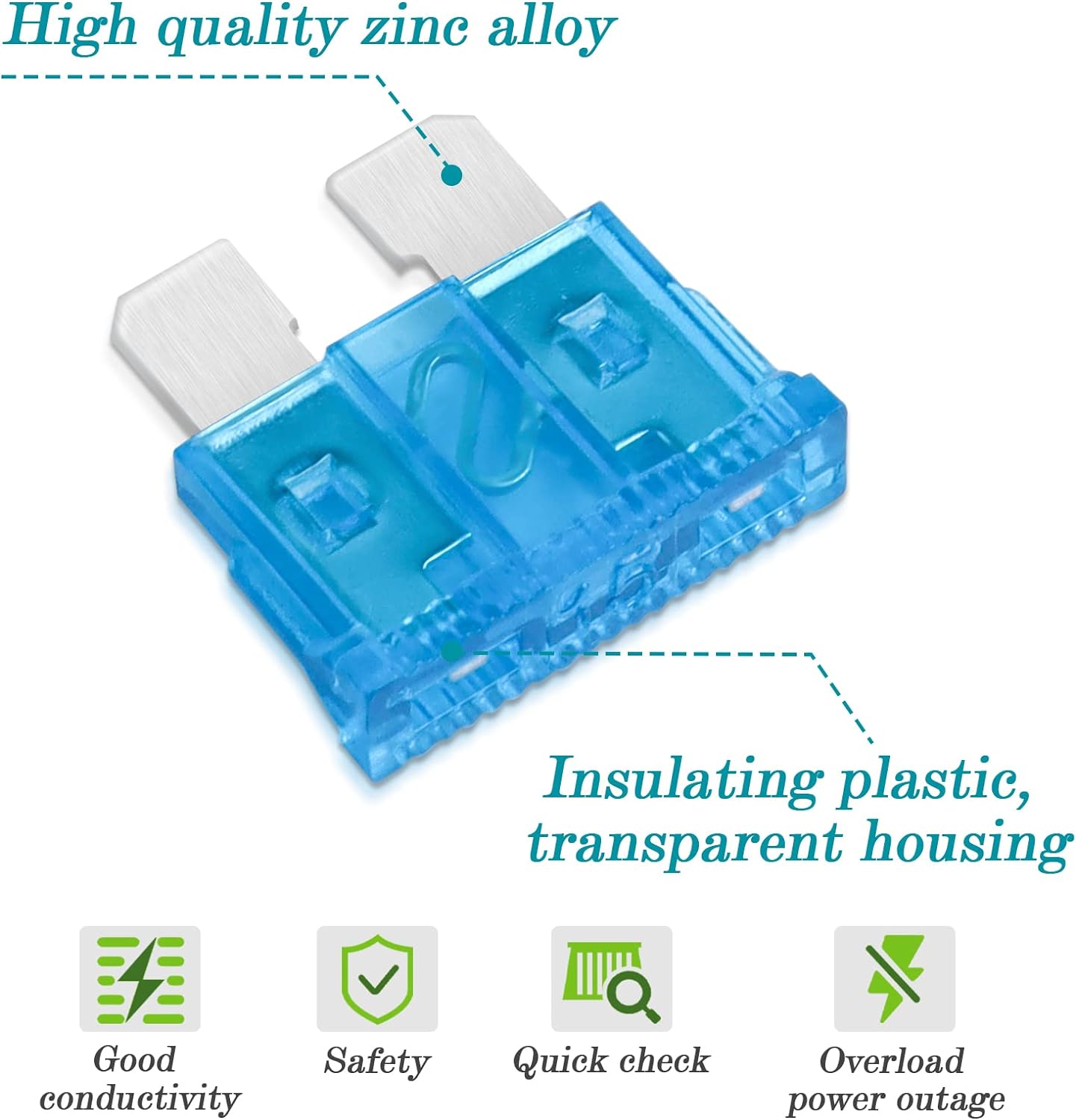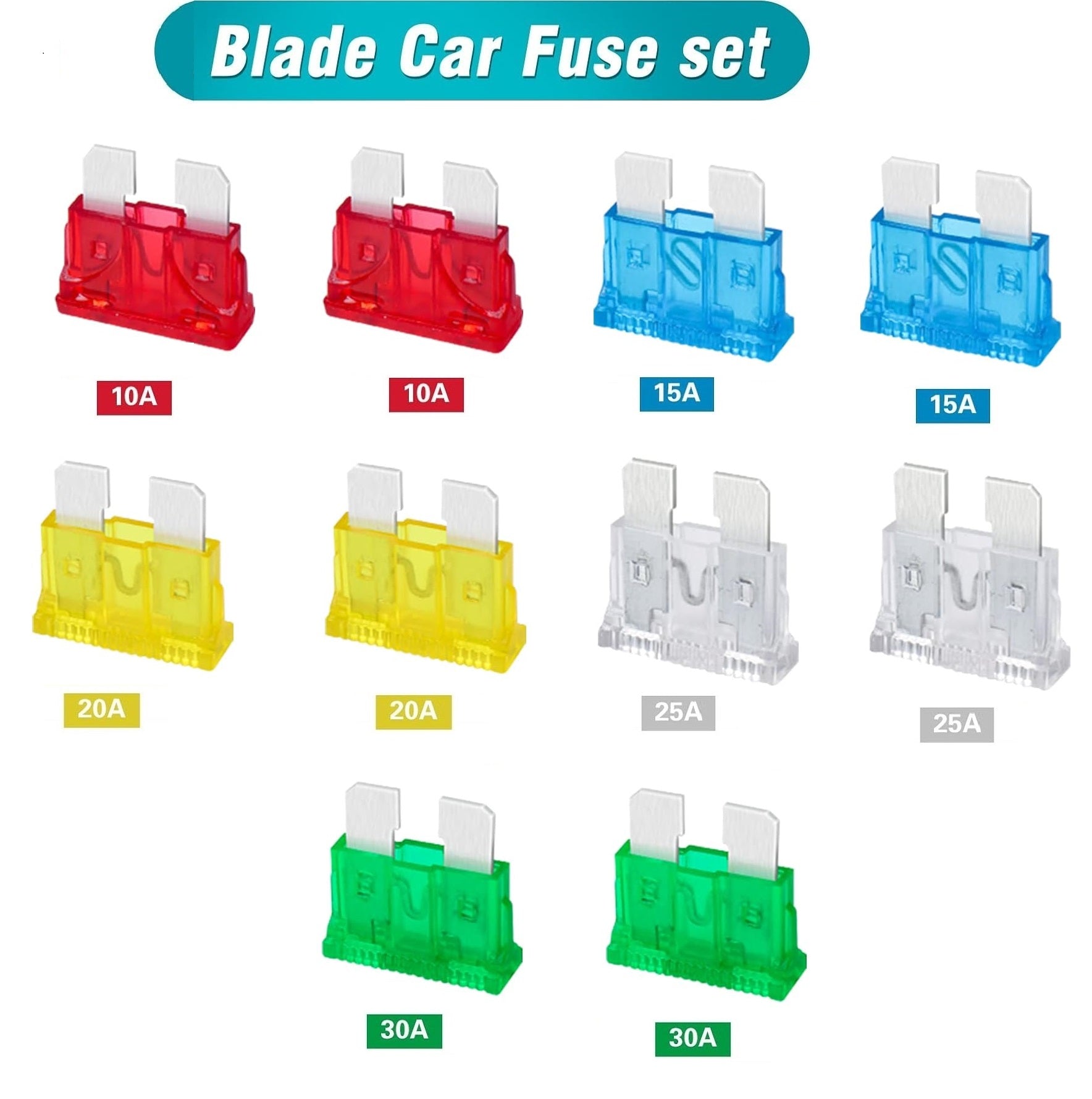 Комплект от 10бр предпазители за кола бушони бушон в блистер 10-30А Лесни за монтаж Подходящи за всякакъв вид автомобили, мотори, лодки и др. Размери: 19 x 19 x 5 мм Комплектът съдържа: 2 x 10A 2 x 15A 2 x 20A 2 x 25A 2 x 30A