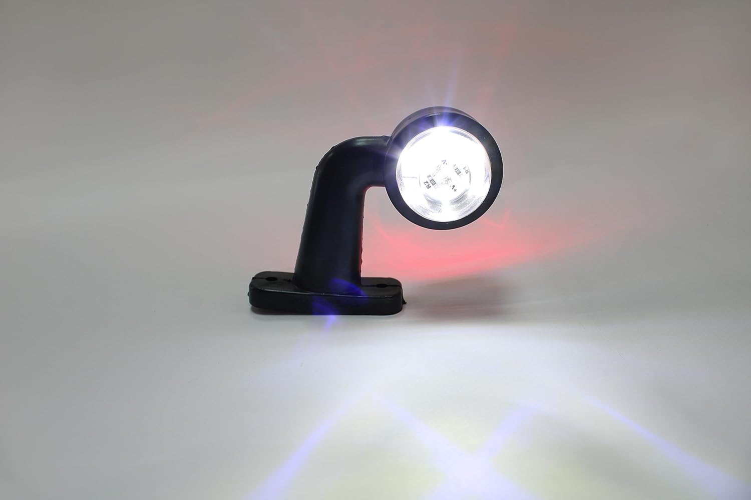 Комплект от 2 броя 12- 24V LED къси мини странични габаритни светлини тип рогче въртящи се с ротация за камион ремарке платформа каравана и др. бяло-червен 75 X 60 mm