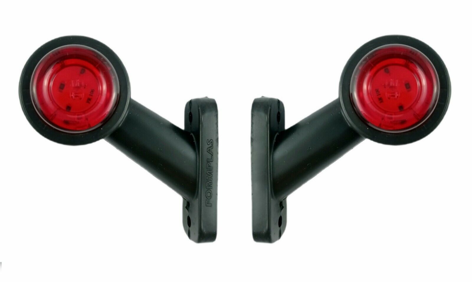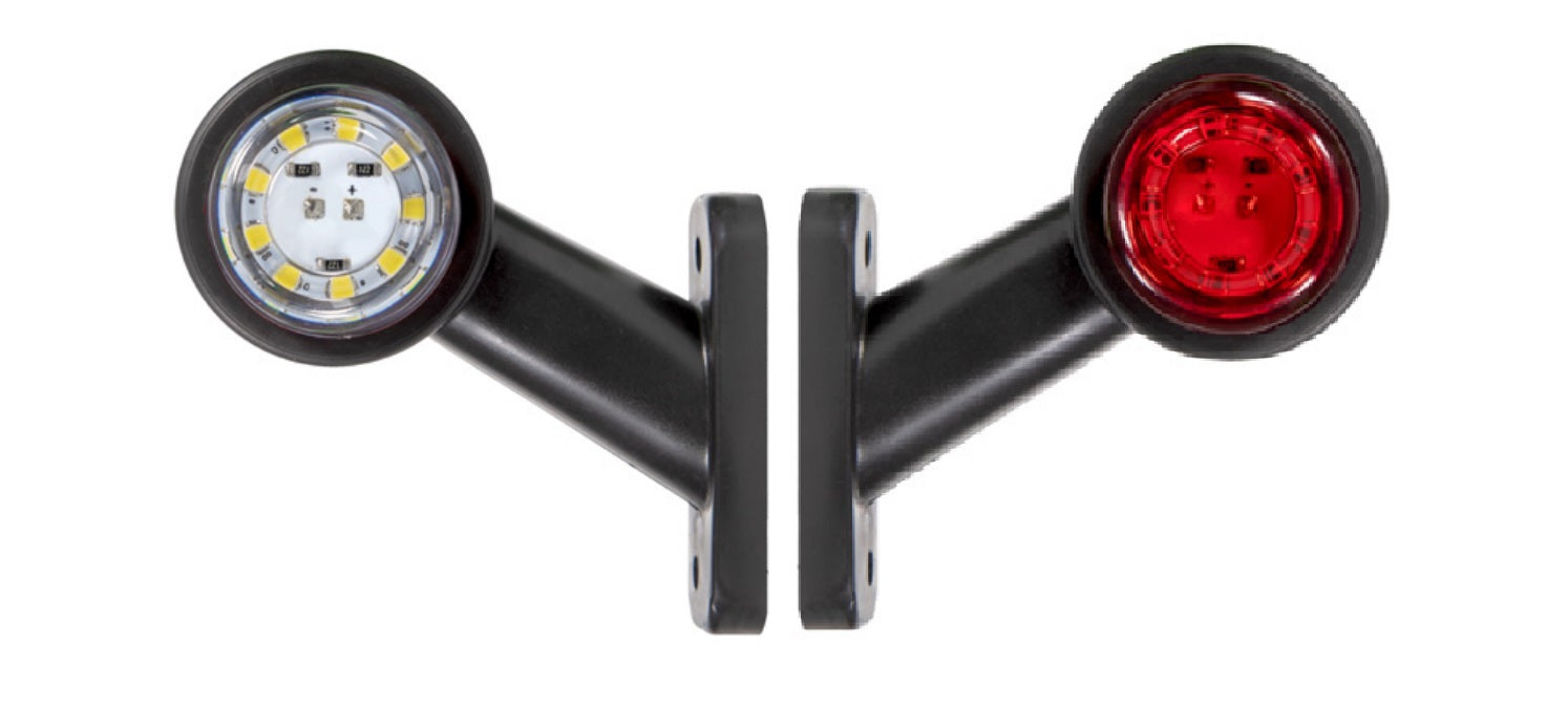 Комплект от 2 броя 12- 24V LED къси мини странични габаритни светлини тип рогче въртящи се с ротация за камион ремарке платформа каравана и др. бяло-червен 80 X 60 mm