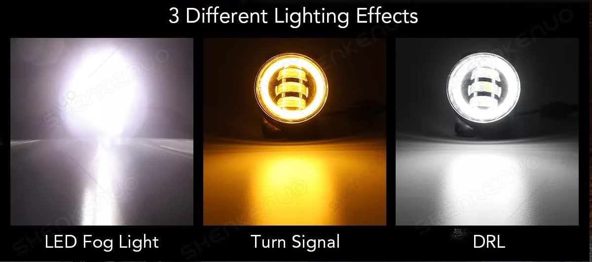 Комплект от 2 броя 4 инча 9.8cм ЛЕД LED фар лампа халоген 12V-24V с DRL дневни светлини мигач бяло-жълто за Jeep Dodge Chrysler Peugeot Ford CITROËN Opel Dacia Jaguar PORSCHE Suzuki Nissan RENAULT