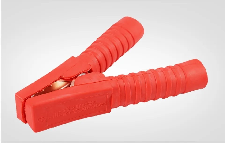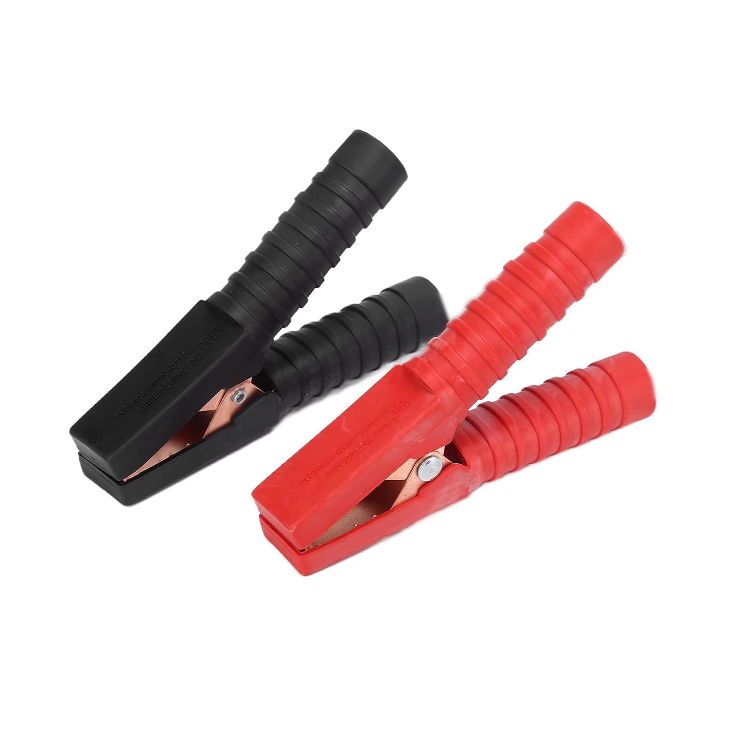 Комплект от 2 броя изолирани щипки за акумулатор с гумено покритие скоби тип крокодил 300А червено - черно