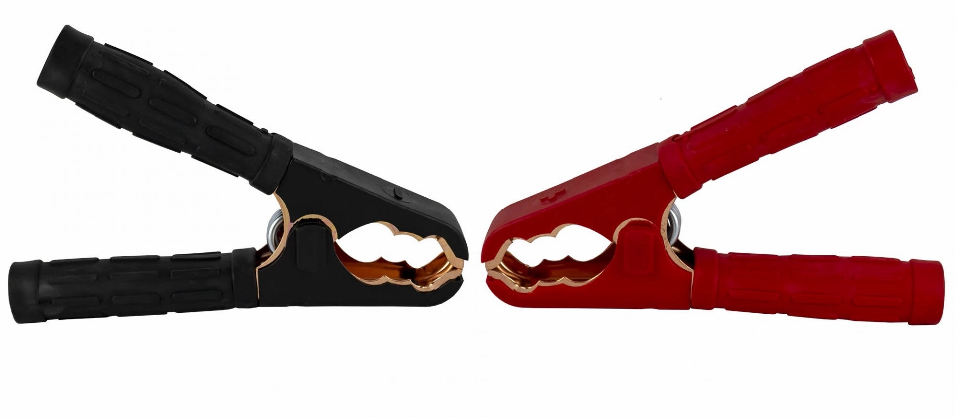 Комплект от 2 броя изолирани щипки за автомобилни акумулатори с медно покритие скоби тип крокодил 300А червено - черно