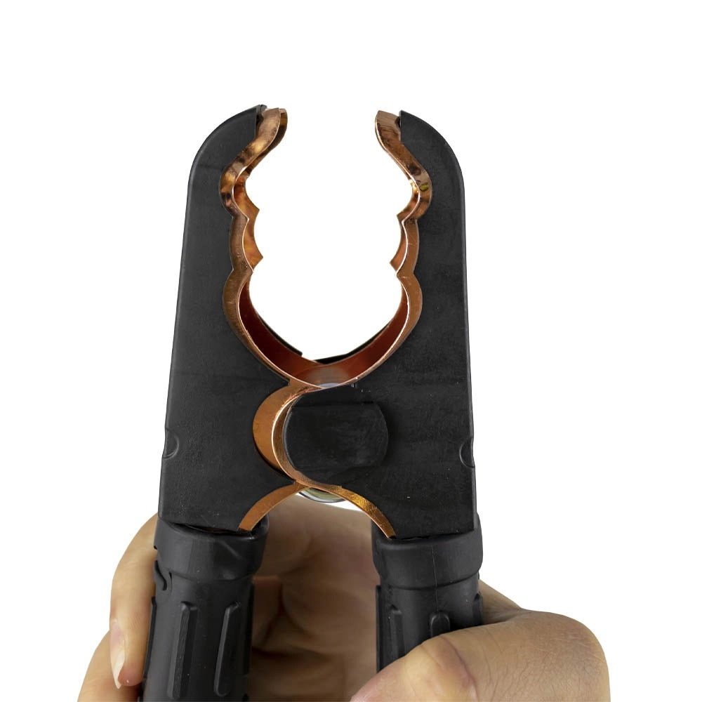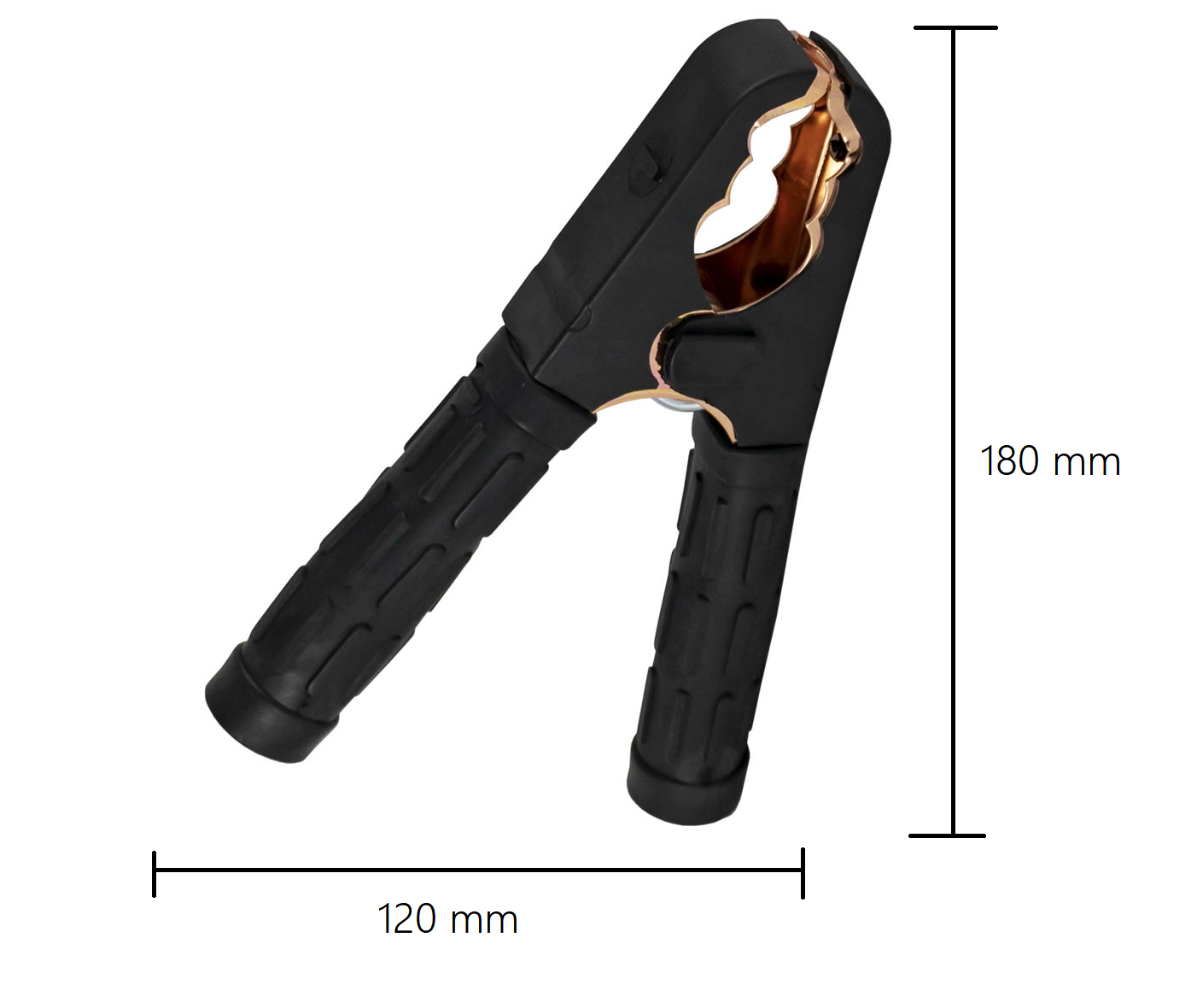 Комплект от 2 броя изолирани щипки за автомобилни акумулатори с медно покритие скоби тип крокодил 300А червено - черно Щипки за акумулатор + / - Тип: Крокодил Размери : 180мм х 120 мм Материал: Метал с медно покритие и Гумено изолирани дръжки Максимален ток: 300А, напрежение: 12 / 24 волта Цвят: Черен и червен Оптимален контакт чрез медните зъби Здрави и издръжливи Изработени от висококачествени материали, практични за използване Пакетът включва: 2x щипки за батерии + комплект винтове и скоби