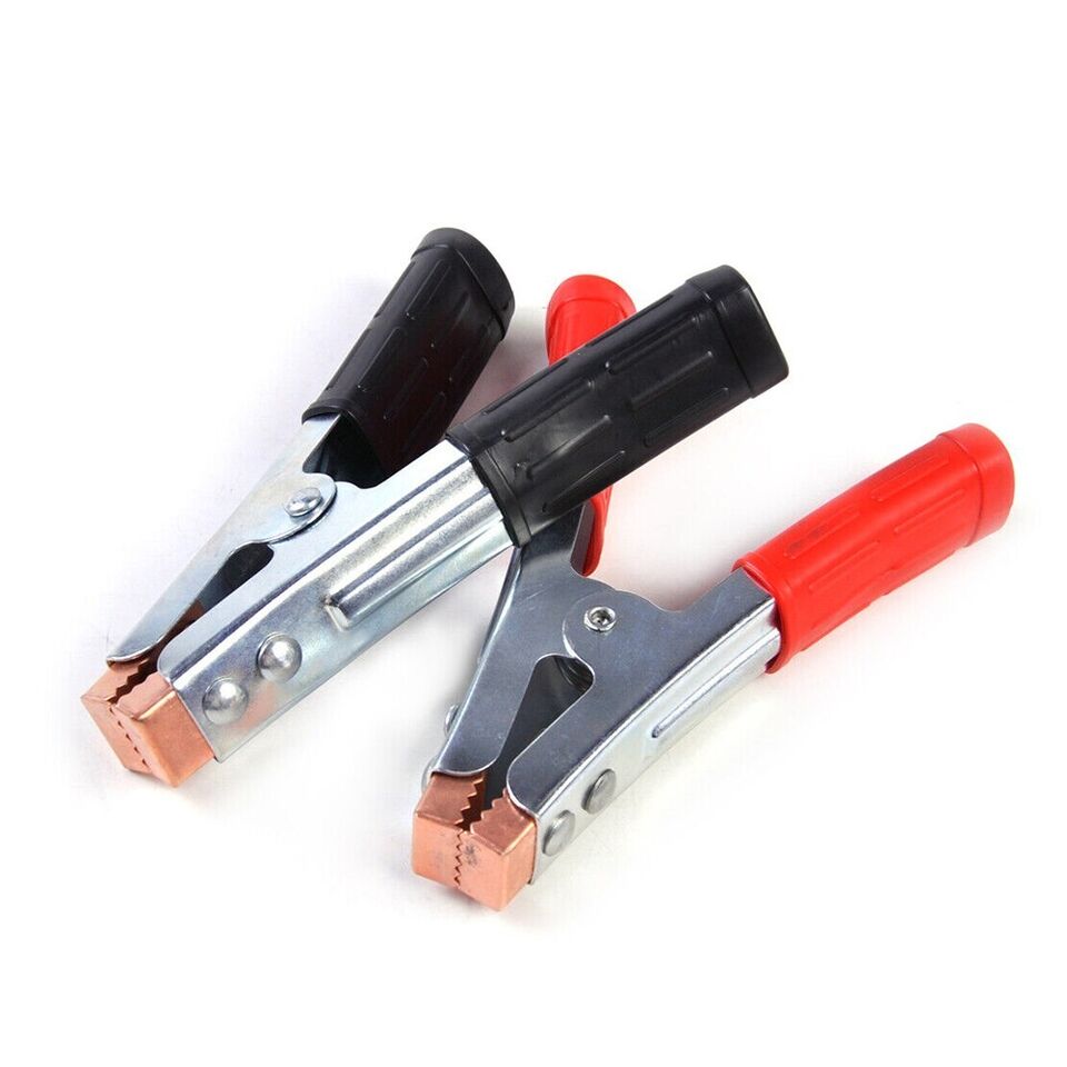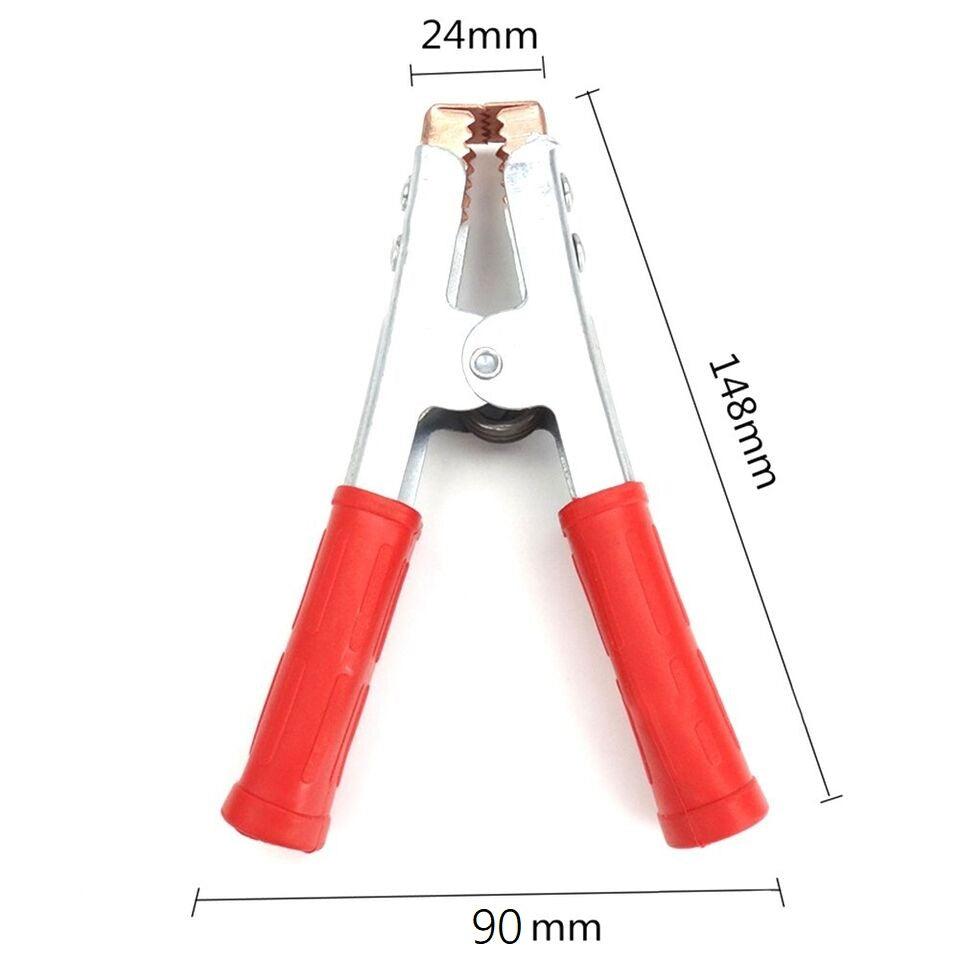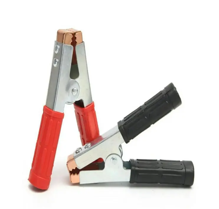 Комплект от 2 броя изолирани щипки за автомобилни акумулатори с медно покритие скоби тип крокодил 600А червено - черно Щипки за акумулатор + / - Тип: Крокодил Размери : 148 мм х 24 мм Материал: Метал с медно покритие и Гумено изолирани дръжки Максимален ток: 600А, напрежение: 12 / 24 волта Цвят: Черен и червен Оптимален контакт чрез медните зъби Здрави и издръжливи Изработени от висококачествени материали, практични за използване Пакетът включва: 2x щипки за батерии + комплект винтове и скоби