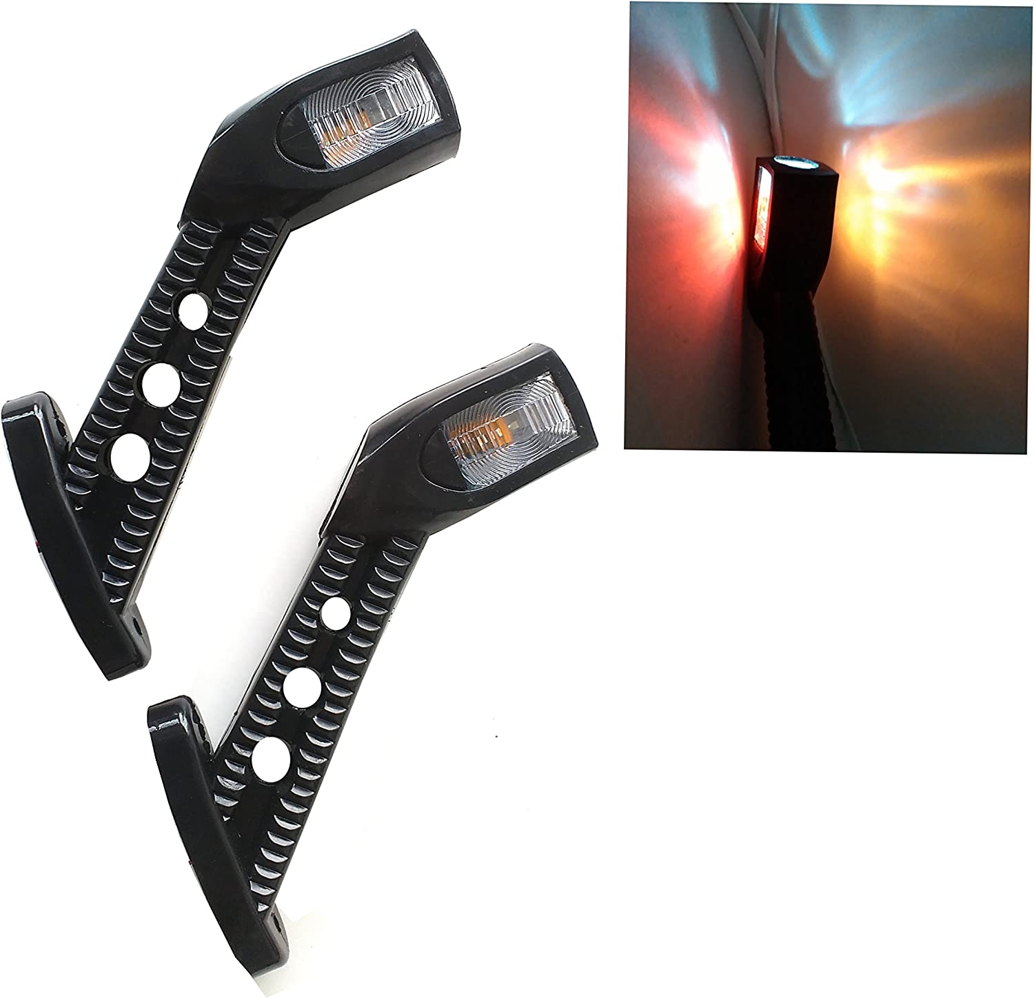 Комплект от два броя - LED странични рогчета/маркери - с всички габаритни светлини - / бяло -[оранжево]- червено / - - 18.5см височина - габаритни светлини за камиони, тирове и ремаркета ** бяло - отпред ** оранжево - отстрани ** червено - отзад LED Нова SMD технология Размери: Височина: 175 mm Монтажна ширина: 75 mm Ширина на основата: 100 mm x 35 mm Работно напрежение: мултиволтаж 12V - 24V