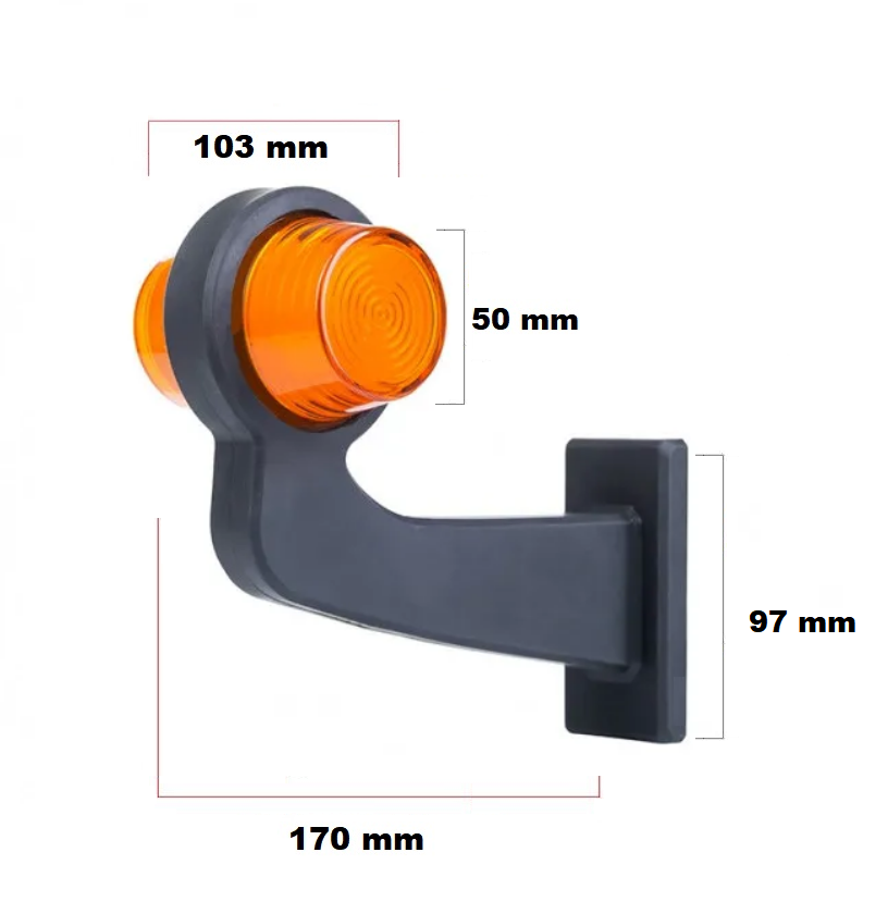 Комплект от 2 броя LED Диодни Странични Рогчета Маркери Габарити Светлини За Камион Тир Ремарке Платформа 12V 24V оранжево Неон Ефект Нова SMD технология - по-ярка и по-малко консумация Силна и ярка светлина Цвят: оранжево Материал: ABS пластмаса Тежка гумена основа Удароустойчива, водоустойчива. Съвместим с всички превозни средства на 12-24V Размери: 170 x 103 x 50 mm