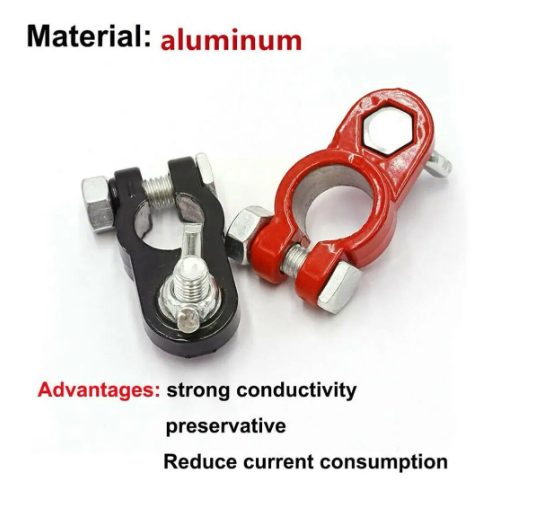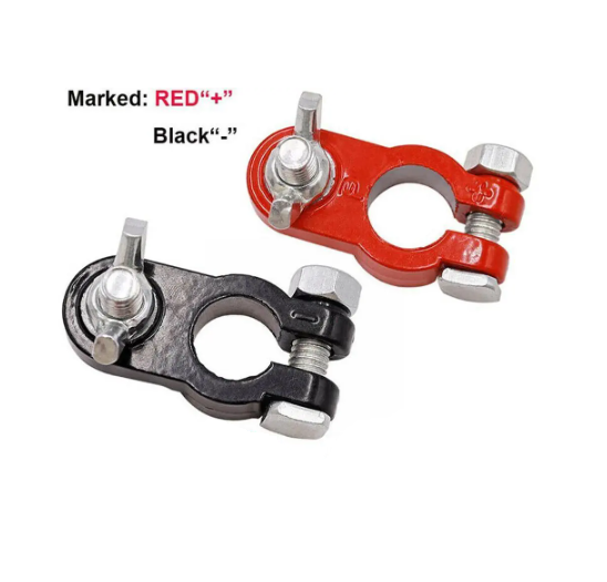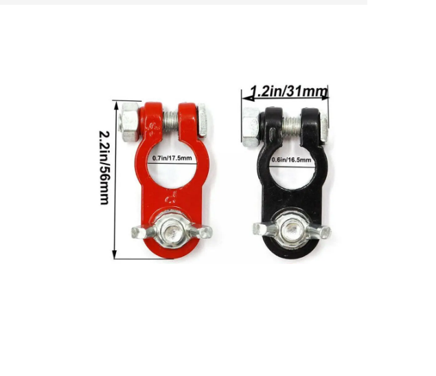 Оловни клеми за акумулатор. Комплект: 2броя. Материал: олово. Подходящи за 6, 12V положителен и отрицателен полюс на батерията. Захранване към акумулаторната клема с винт. Размер: Както е показано Вътрешен диаметър: 16-18 мм Чисто нови и висококачествени Притежават устойчивост на корозия и добра електропроводимост. Монтаж и демонтаж без необходимост от инструменти. Лесно окабеляване.