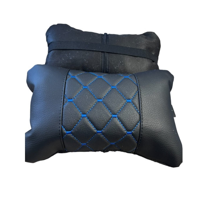 Комплект от 2 броя възглавници за врат. С тези възглавнички може да забравите за умората във врата и за натоварването на прешлените по време на път. Направете живота си по-комфортен, по-безопасен и по-здрав! Ако ежедневно прекарвате часове зад волана то този продукт е точно за вас! Меки, удобни, осигуряващи комфорт при пътуване. Подходяща както за дълги пътувания, така и за домашен релакс. Захващат се за задглавника посредством ластик. Универсален комплект за всички превозни средства и четири сезона. Материалът е мек и лесен за почистване. Ръбовете са меки и не приченяват раздразнения на кожата. С ластик. Стилен дизайн. Черно със син шев.