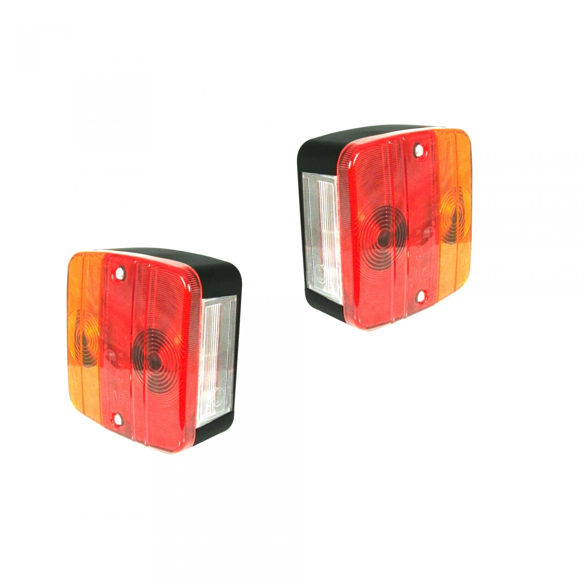 Комплект от 2 стоп светлини с 4 функции, за ремарке, камион, Караванa, Платформа 12V с крушки Работно напрежение: 12V Функции: Стоп Габарит Мигач Осветление за номера Универсален Размери: 104мм - 197мм - 50мм Цената е за Комплкет От Два Броя