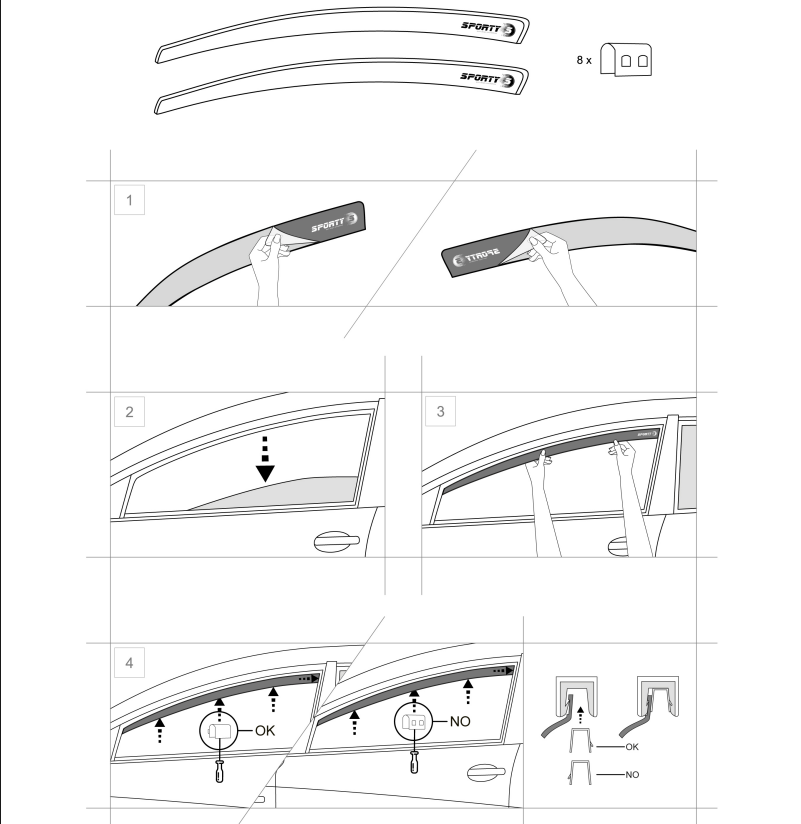 Ветробраните SPORTY са облепени със защитно фолио против надраскване от двете страни,което трябва да премахнете преди монтаж.