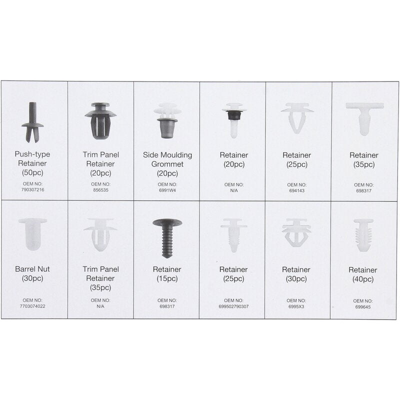 Комплект от 345 броя фиксиращи авто клипсове закопчалки копка - щипка за кори лайсни панели табло и др. за Peugeot Пежо