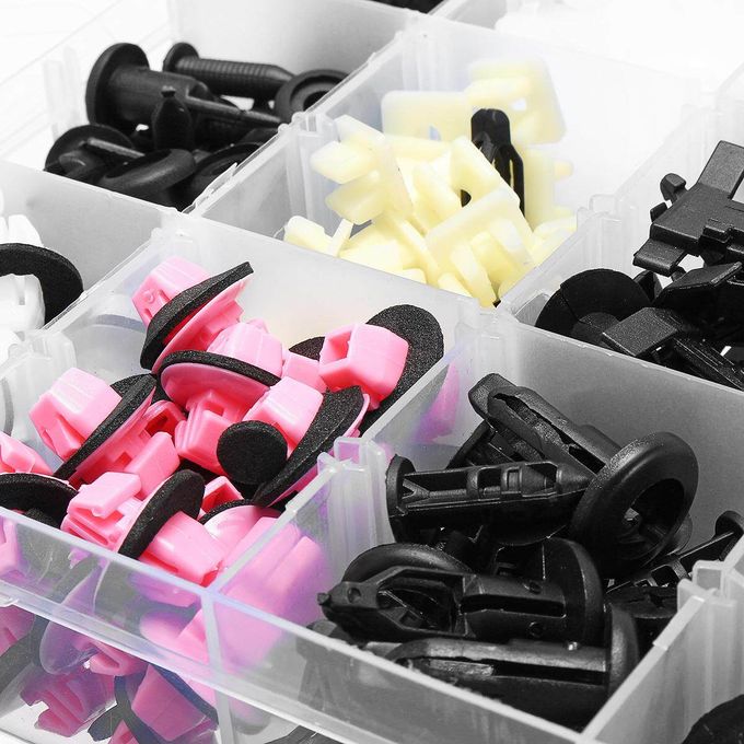 В кутията са включен 360 бр щипки от показаните на снимката модели. Приложение : Toyota Тойота Фина изработка. Изработен от висококачествен пластмасов материал, издръжлив, устойчив на износване и корозия. Лесен монтаж. Приложение: врати, броня, лайсни, подкалници, панели, табло, кори на вратите и др. Бързо и лесно премахване. Чисто нови В кутия