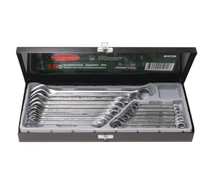 Комплект професионални звездогаечни ключове 6 - 24 мм 16 части 16 броя в метална кутия. Размери: 6,7,8,9,10,11,12,13,14,15,16,17,18,19,22, 24мм Благодарение на удобните им дръжки и стабилен захват с тях се работи много лесно. Подходящ както за любителска, така и за професионална употреба