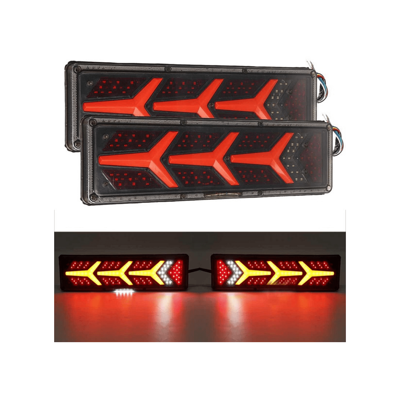 Комплект стопове ляв + десен с динамичен мигач, Неон ефект, 46х12.5см, 24V подходяи за бус, камион, ТИР, ремарке, караванa и др.