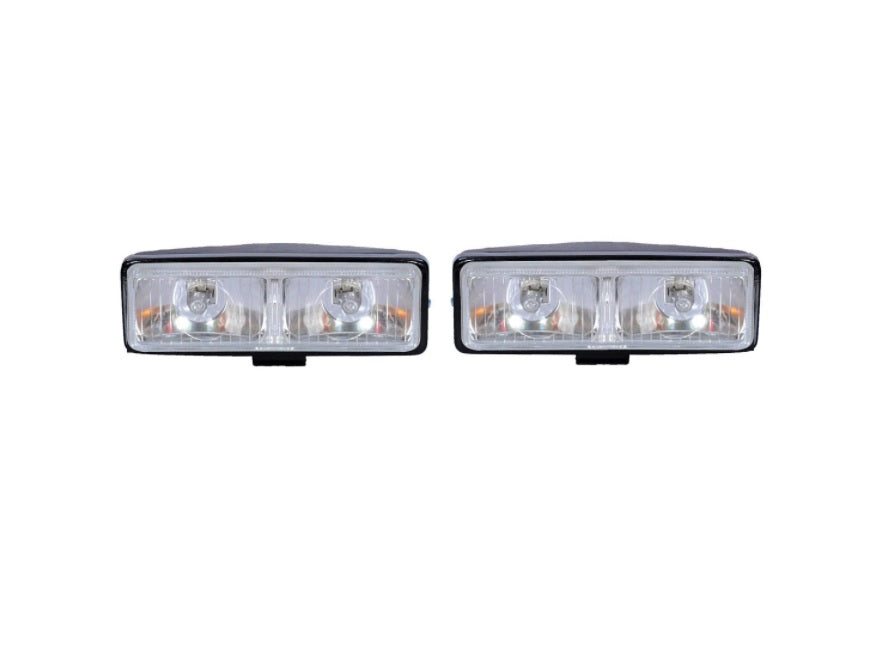 Комплект светлини - прозрачно стъкло - фар-габарит или фар-допълнителен мигач - подходящи за трактор, багер, комбайн, джипове, ATV - 16см х 6см Характеристики: ~ напрежение: 12V ~ похдходящи за: трактори, багери, комбайни, джипове ATV ... ~ цвят: прозрачно ~ Размер: 16см х 6см х 6см водоустойчиви включени крушки и болтове Крушки: DC 12V H3 55W