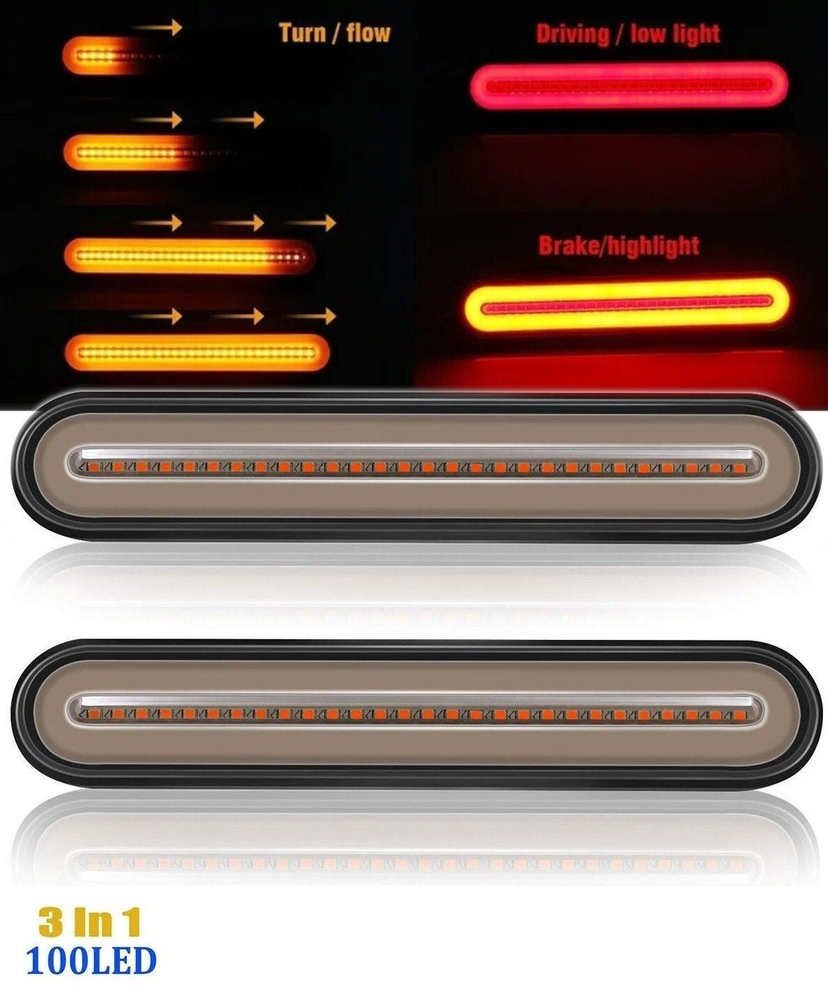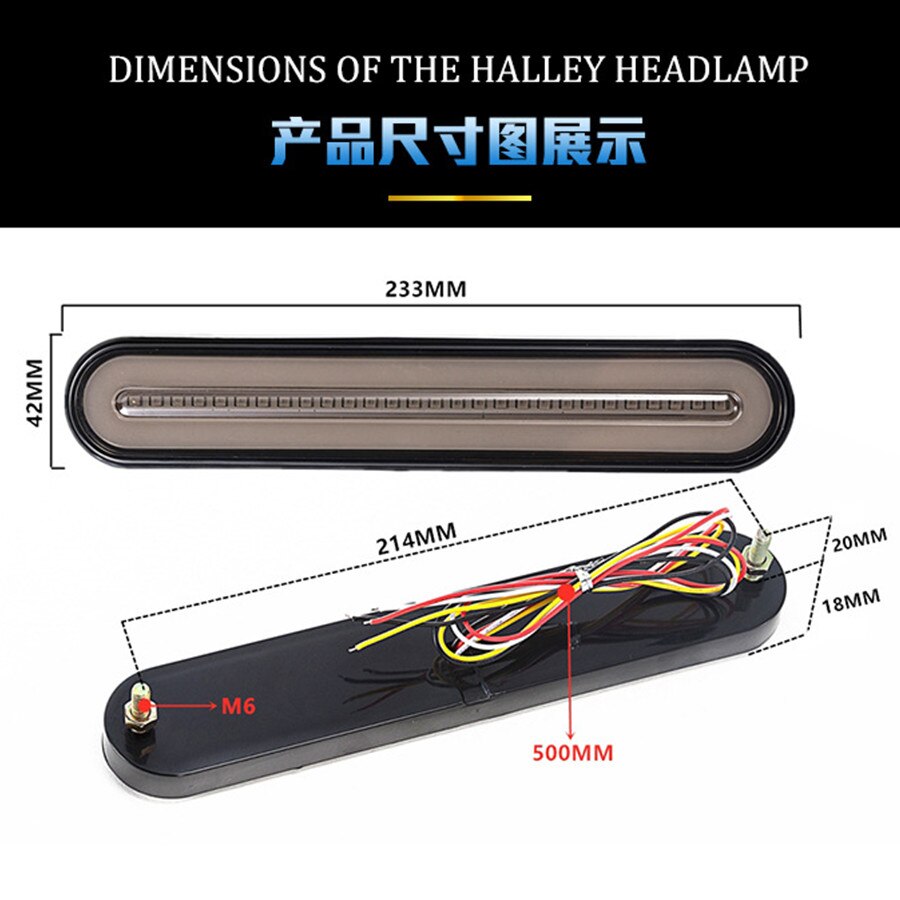 Чисто нови и високоачествени светодиодни стопове. Дълготрайни и изключително издръжливи. По-добра светлинна мощност. Всяка лампа има 28 броя 2835 Super Bright LED + 72 броя 2835 SMD LED) диоди . 3 В 1 Функции стоп, габарит, ,мигач. Спецификации: Работно напрежение: 12-24V LED Степен на водоустойчивост: IP67 Габарит 0,05 A/0,65 w; Стоп 0.17A/2.2W; Мигач 0.28A/3.65W LED Тип: 2835 SMD Цвят на светлината: червено+жълто Цвят на лещите: червен, прозрачен Материал: PC+ABS Поликарбонатна леща с корпус за всякакви атмосферни условия. Размер: 233 мм х 42 мм Разстояние между монтажните отвори 214MM