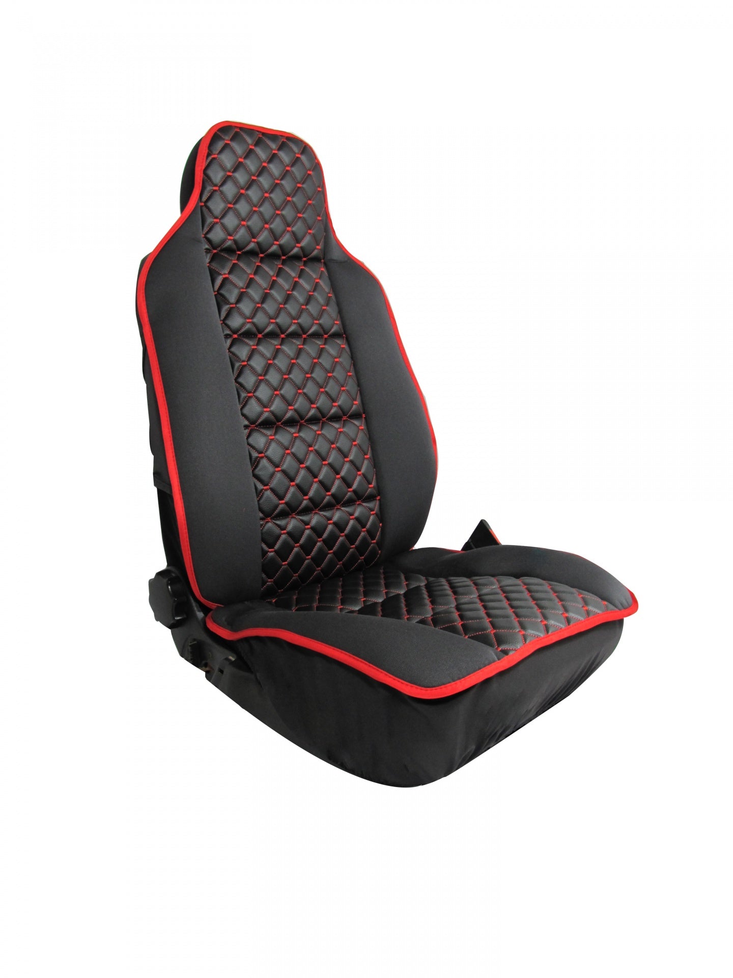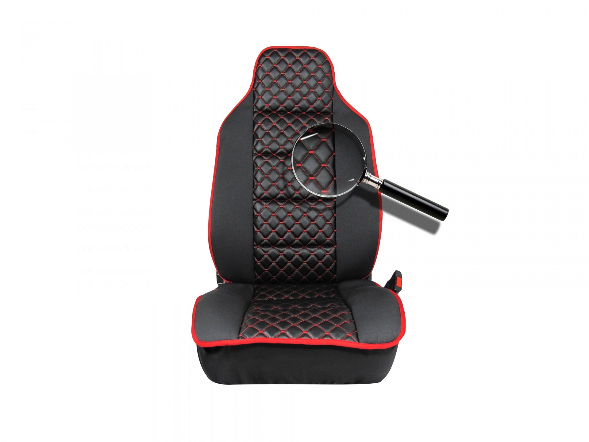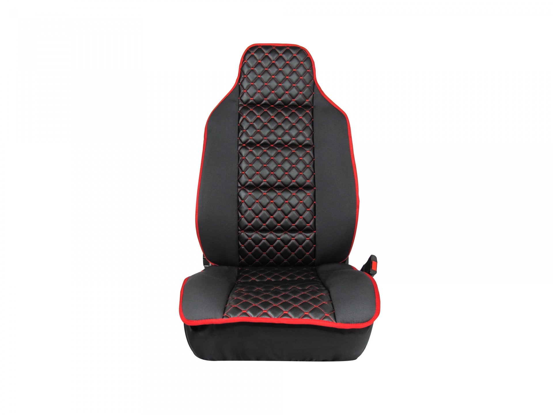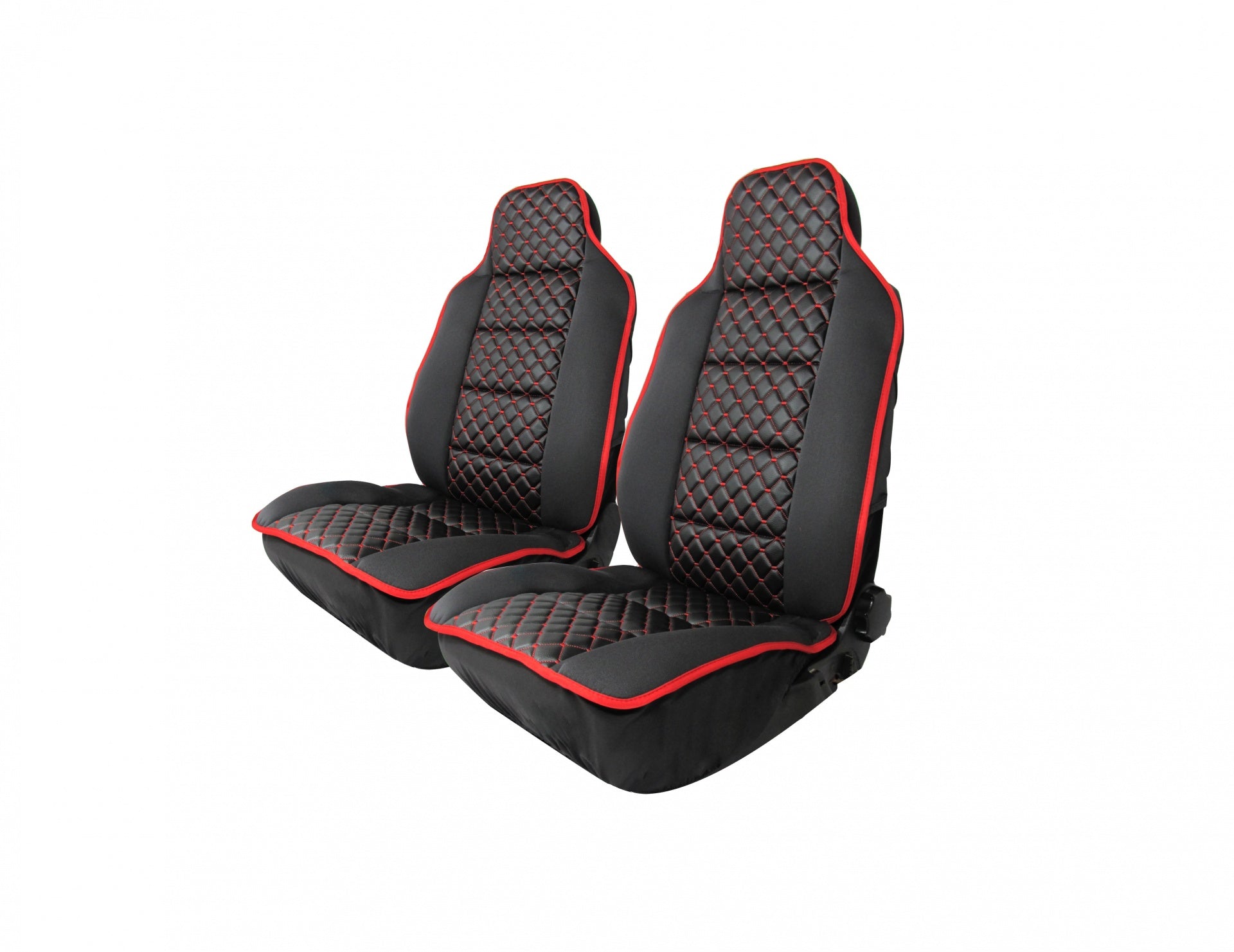 Универсална тапицерия за предни седалки от текстил и еко кожа Удобна за използване, изработена от черен текстил и червенконец, подходяща за повечето модели автомобили: Защитава седалките на вашия автомобил, като запазва оригиналната тапицерия от замърсяване и износване - създава комфортна атмосфера - изработена от висококачествени материали - състои се от 2 части включващи калъфки за предните седалки -придава нов стил на автомобила